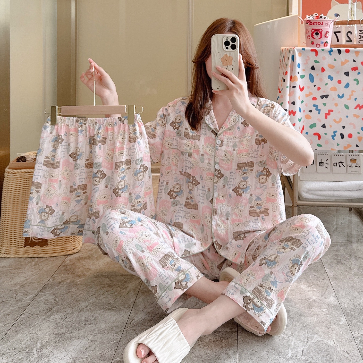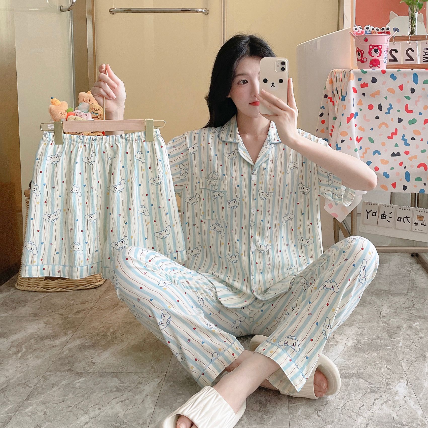 2026新作春夏 新作 プリーツ クラウドコットン パジャマ レディース 3点セット プリント スタンドカラー キュート ルームウェア セット キャラクター ルームウェア セットアップ 02