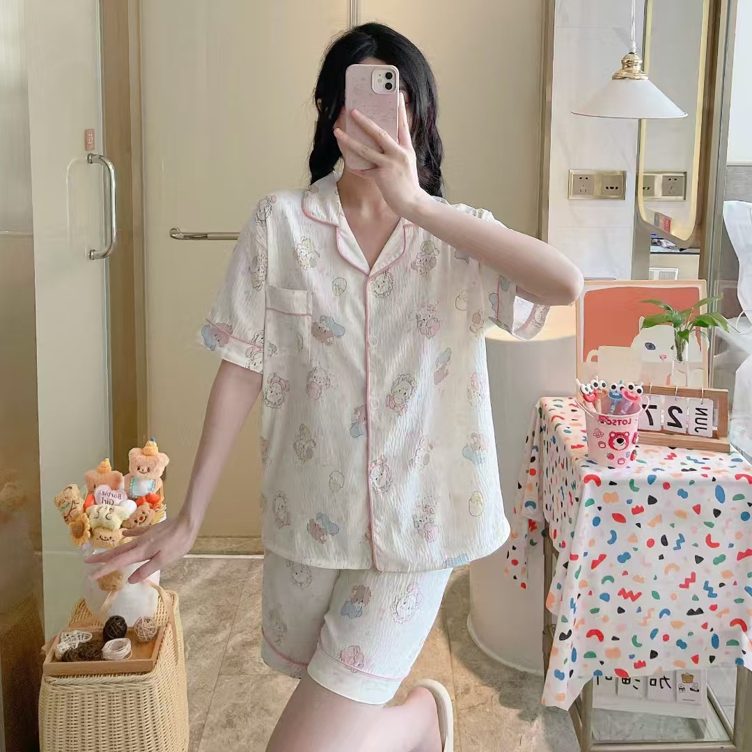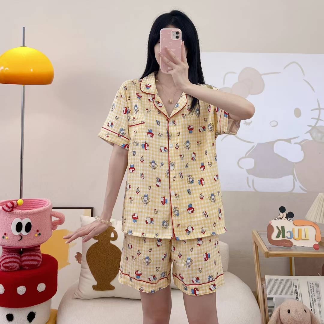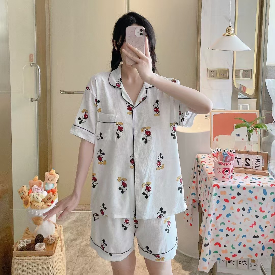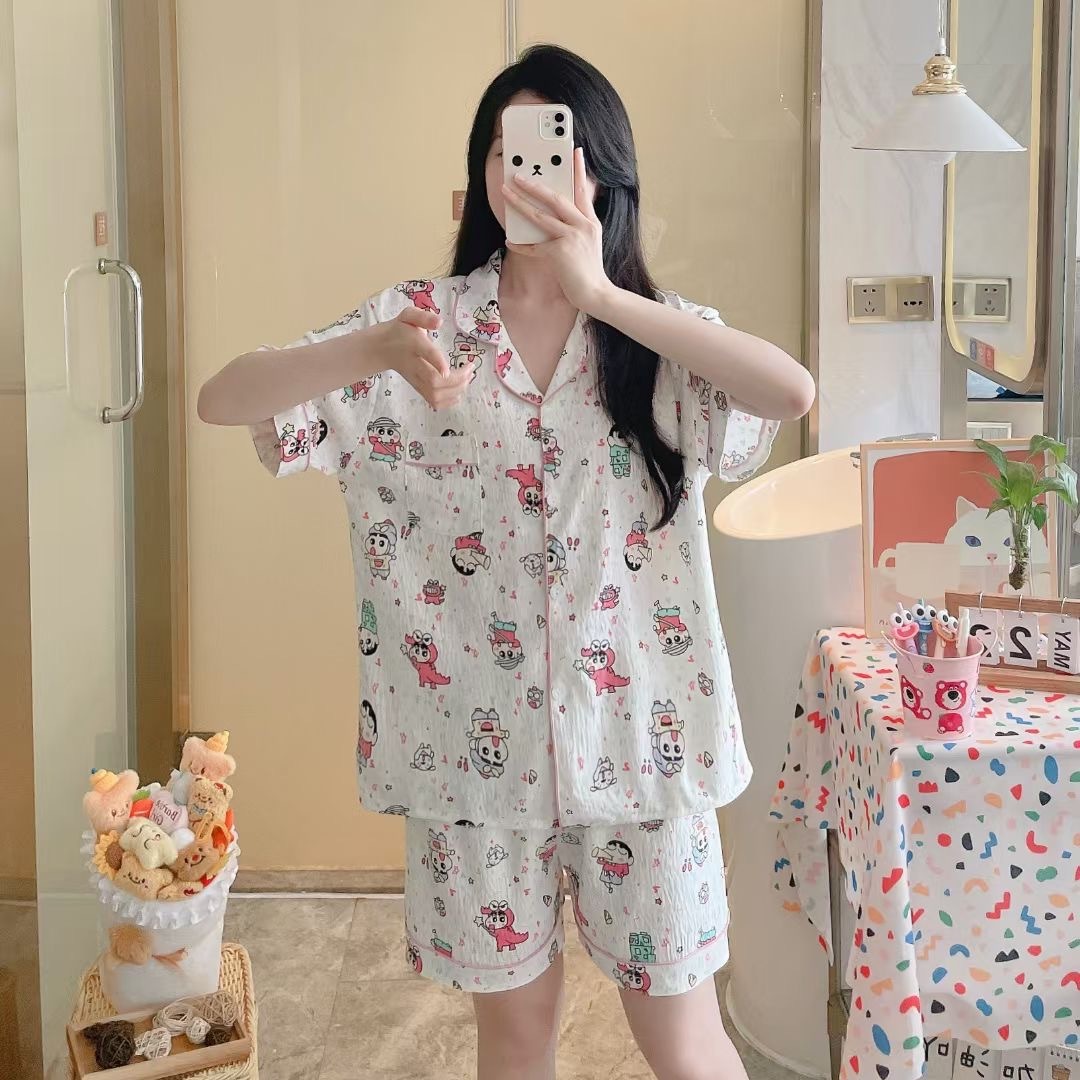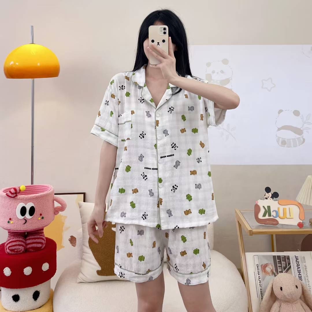 2026新作春夏 新作 プリーツ クラウドコットン パジャマ レディース 2点セット プリント スタンドカラー キュート ルームウェア セット キャラクター ルームウェア セットアップ 04