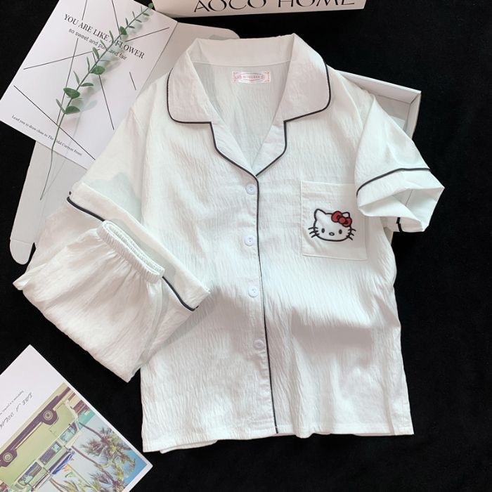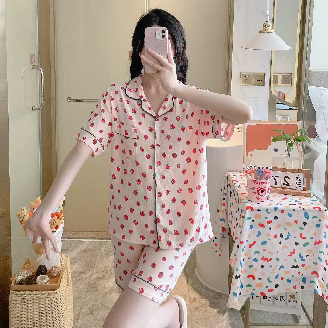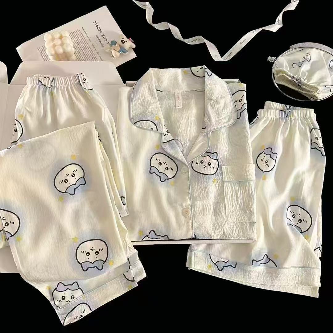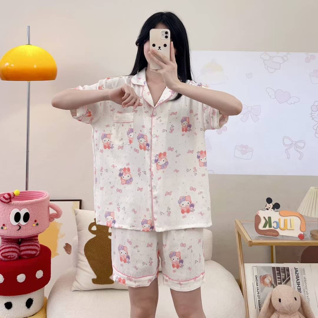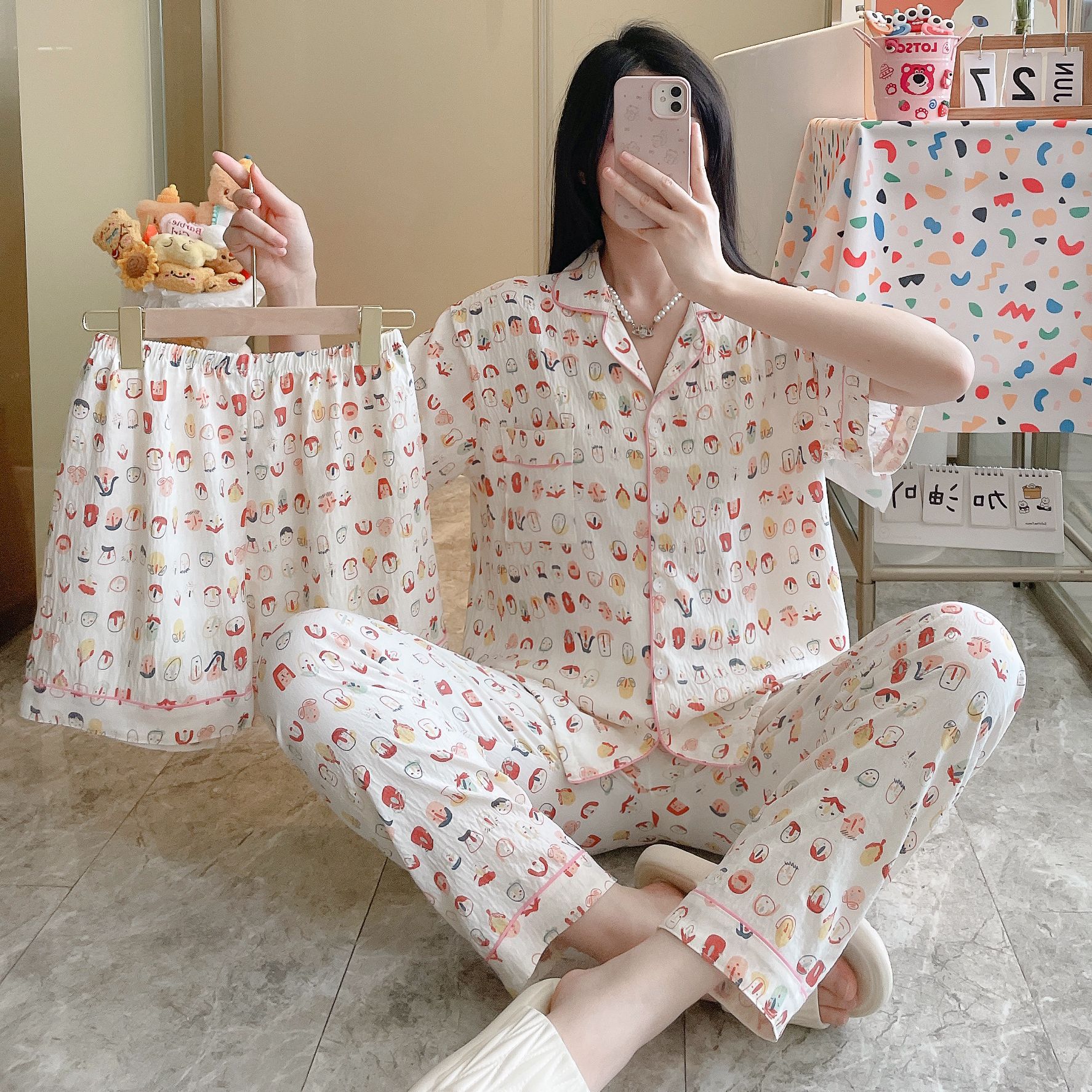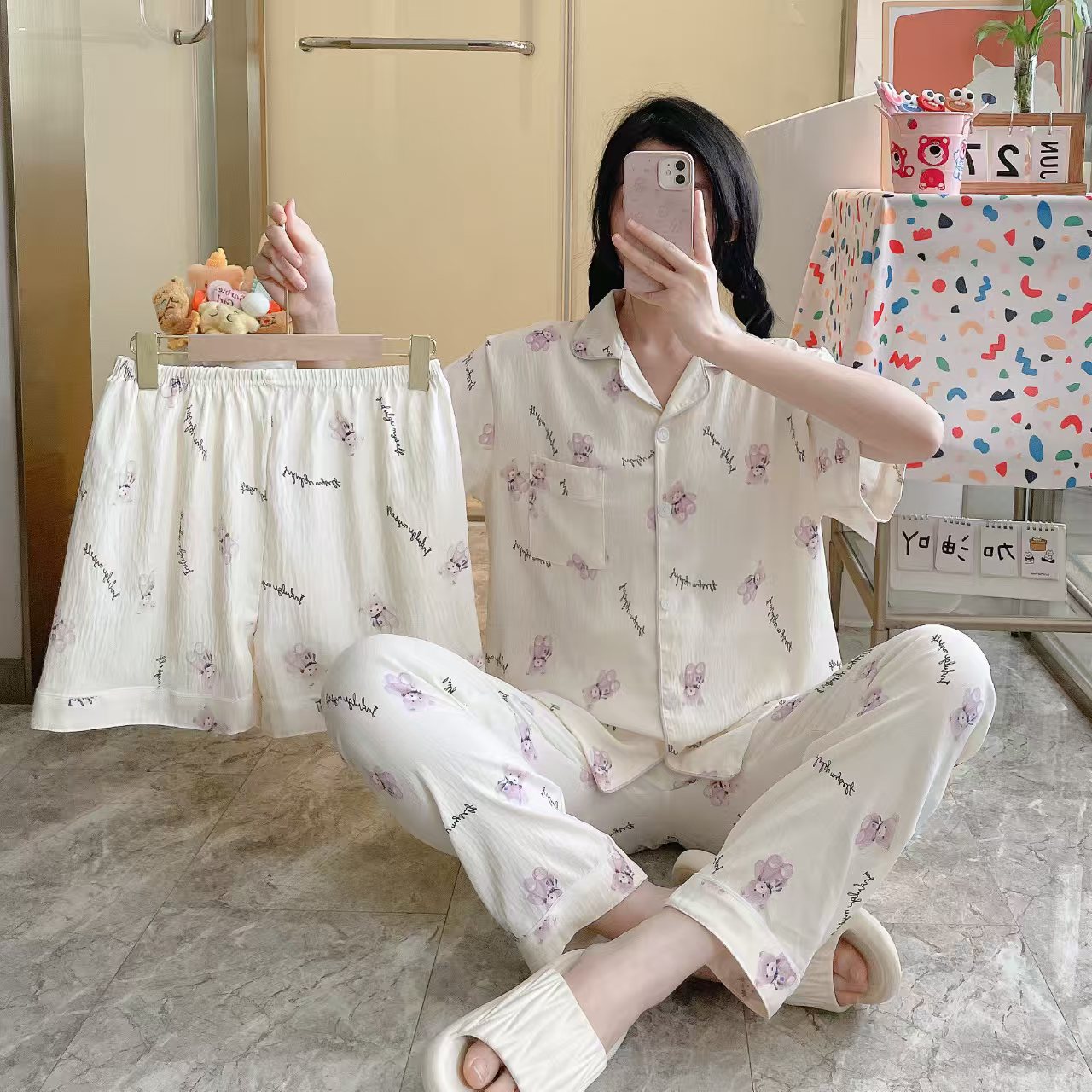 2026新作春夏 新作 プリーツ クラウドコットン パジャマ レディース 2点セット プリント スタンドカラー キュート ルームウェア セット キャラクター ルームウェア セットアップ 04