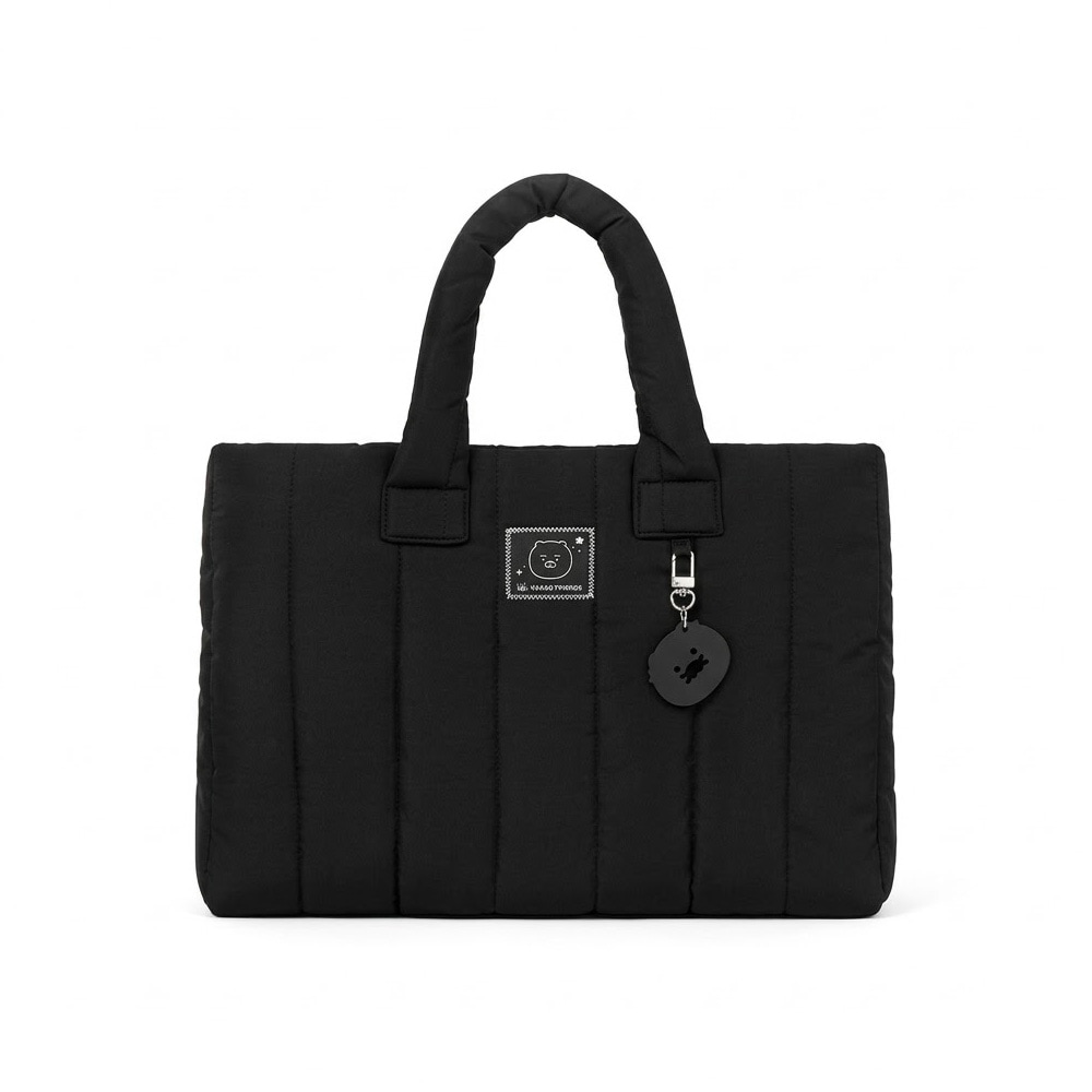 HOLLYS妖精 チュンシク パディングバッグ ブラック 韓国正規品 KAKAO FRIENDS コラボ フェイスポーチ付 キルティングバッグ 軽量 トートバッグ