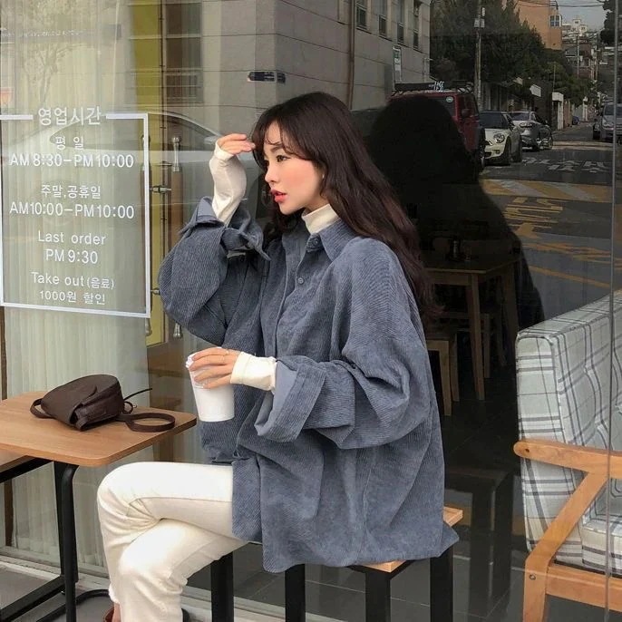コーデュロイブラウス レディース 春服 アウター 体型カバー カーディガン 韓国ファッション 春秋 百掛け 着痩せ シャツ カジュアル 怠惰な風 Tシャツ 長袖 トップス