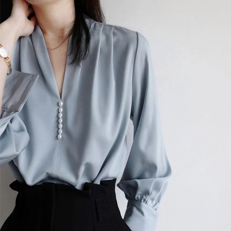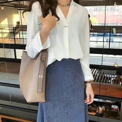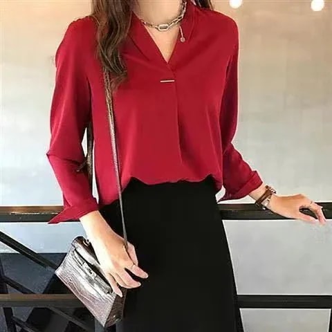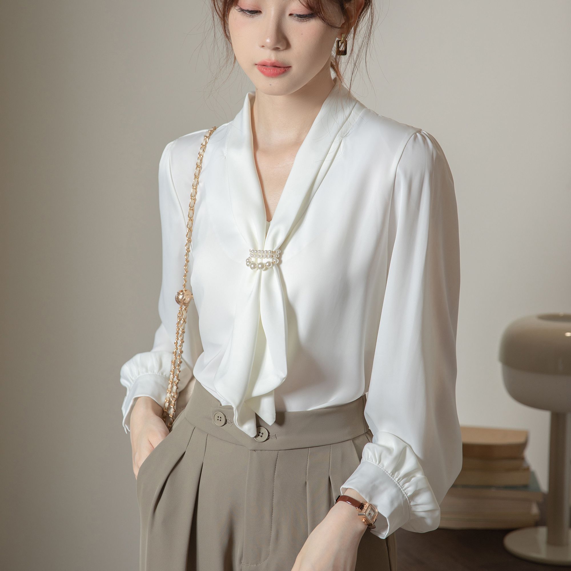 長袖シャツ レディース 春服 優しげな雰囲気のVネック ブラウス エレガント大人可愛い 長袖 トップス 韓国ファッションヘッドシャツ通勤オフィスカジュアル ビジネス デイリー使いシャ