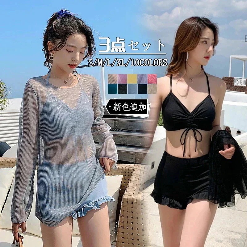 3点セット 露出控えめ 水着 レディース 体型カバー ビキニ セパレート フィットネス タンキニ 大きいサイズ セットアップ 韓国 かわいい セクシー スポーツ おしゃれ ビキニ水着