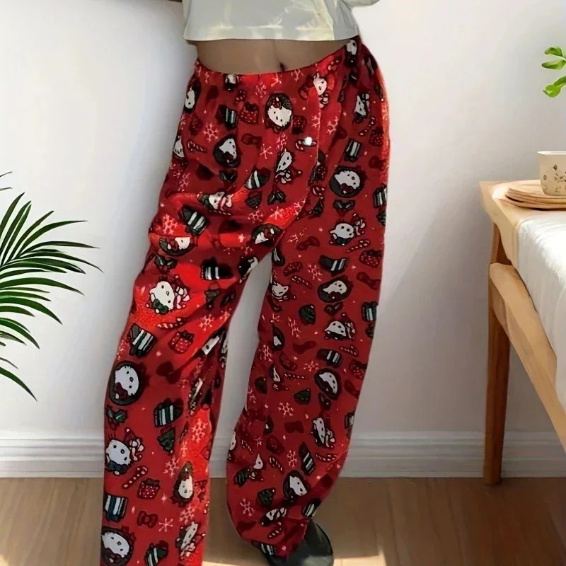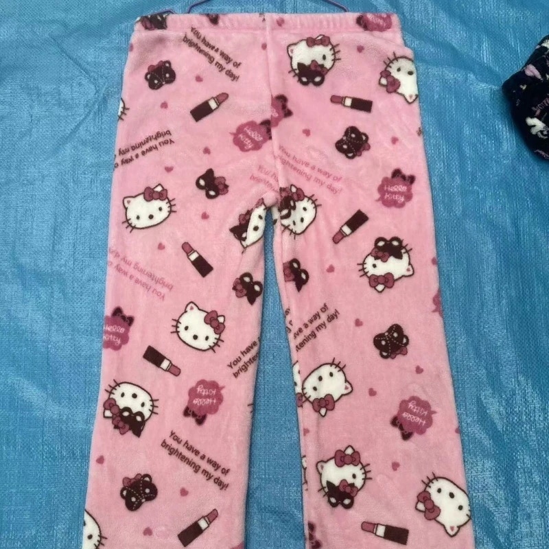 キティ パジャマパンツ ホームウェア 秋 冬 フリース クロミ ガインブレッドマン柄入り レディース 可愛らしい ルーズリラックストレンド パンツ
