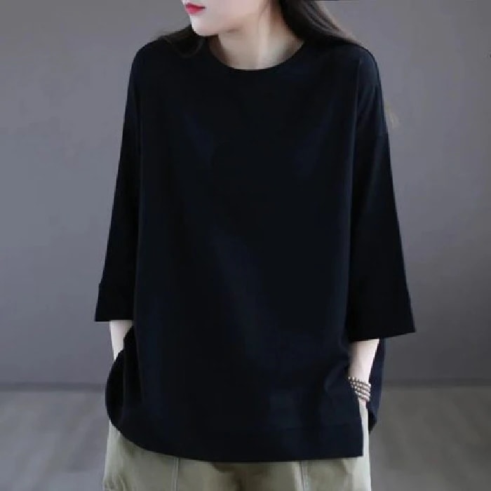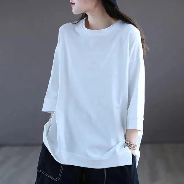 100%綿素材 Tシャツ 7分袖 レディース ゆったり 着痩せ 韓国 無地 夏服Tシャツ 半袖 レディースゆるトップス[3カラー] Tシャツ カットソー