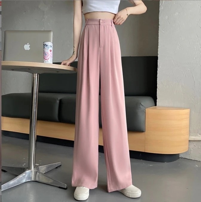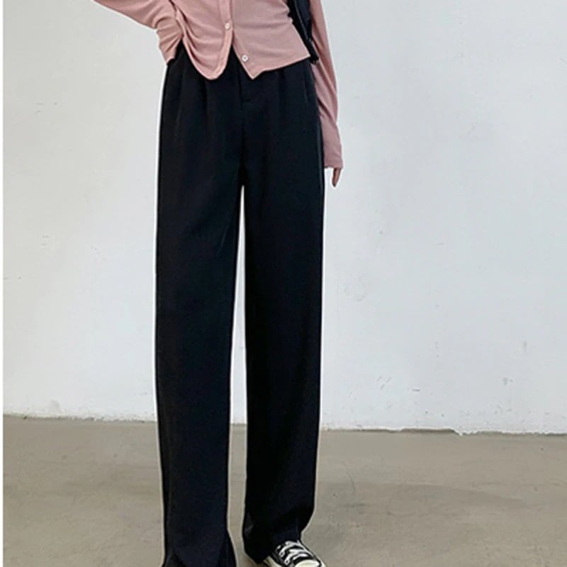 着丈選択 楽ちん ハイウエスト ストレートパンツ レディース 脚長効果 春夏 美脚ワイドパンツ ポケット付 着痩せ 長ズボン シンプル ボタンストラップ ロングパンツ 通気性 体型カバー 通