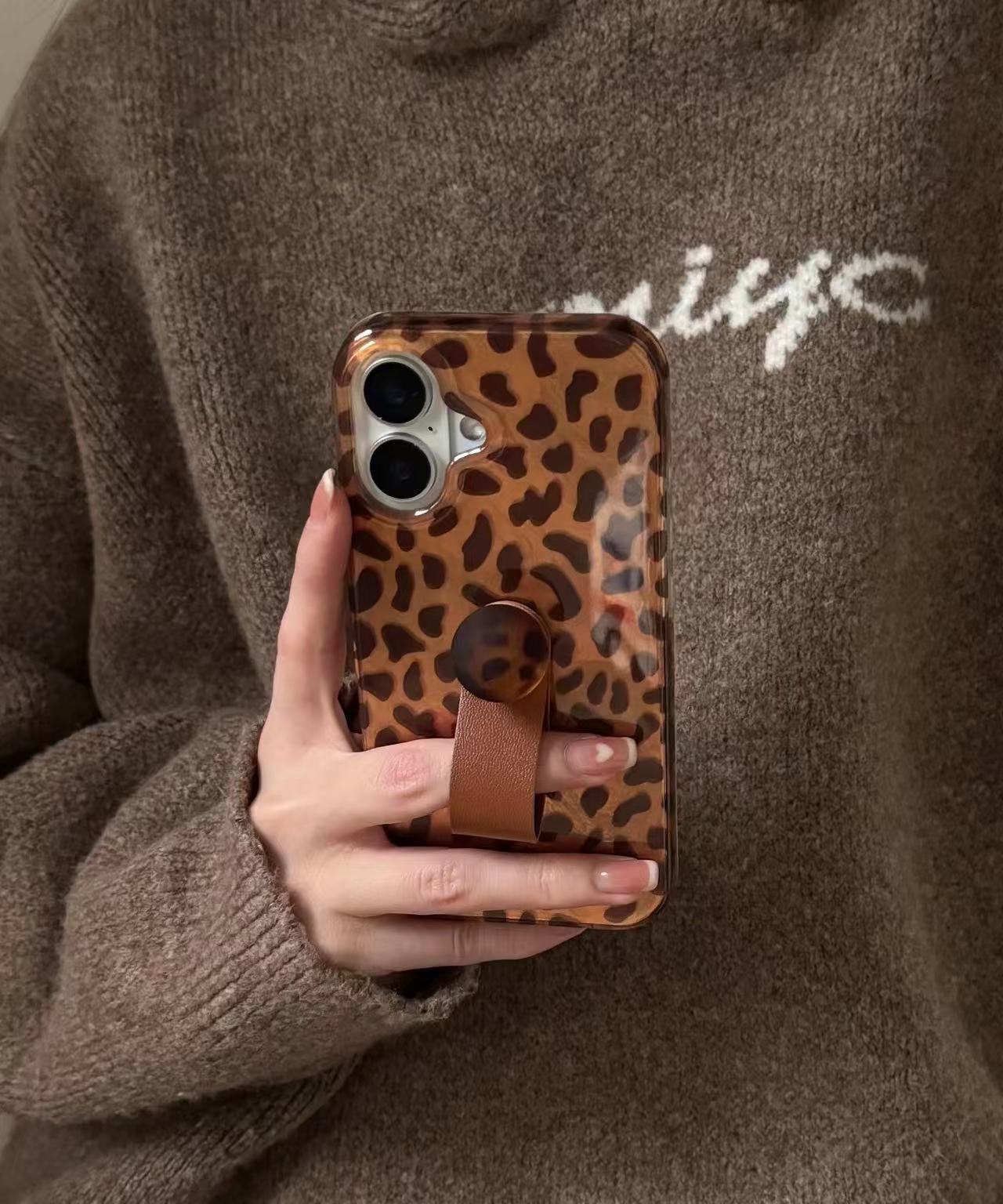 レトロで感のあるヒョウ柄のラウンドリングiPhone 16 promaxアップル15ケース14女に対応