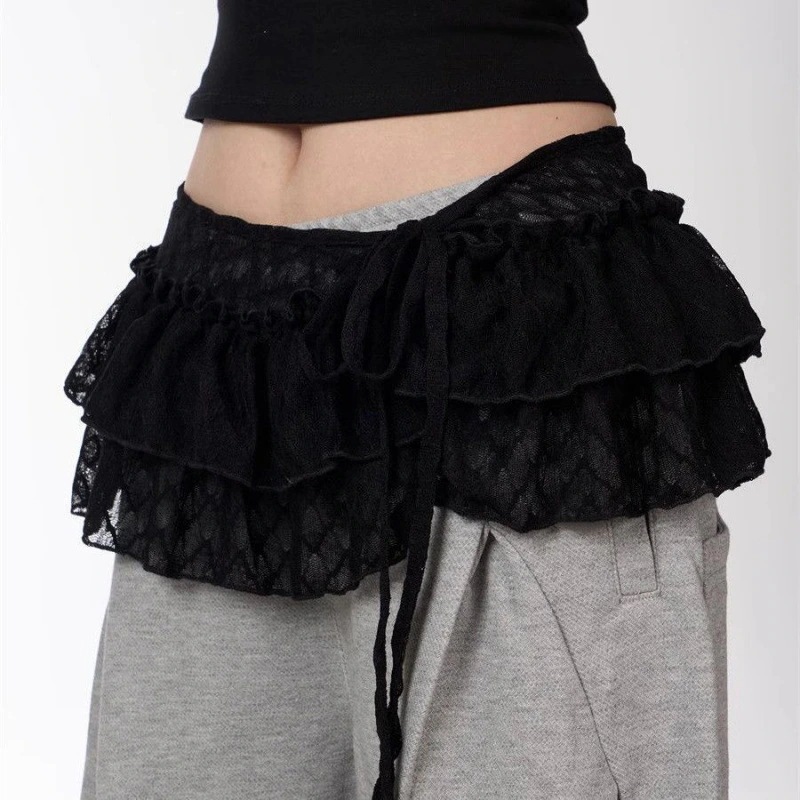 2025年新作 ヘビーウェイト・レース・フリル付きショートエプロン エプロン・スカート・フレアスカートにミニスカートを合わせたコーディネート