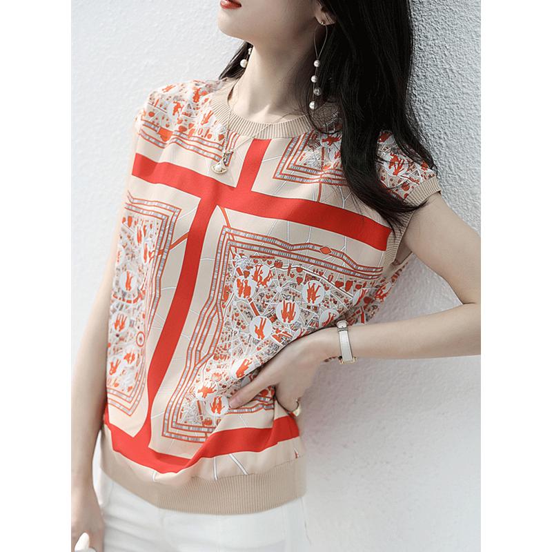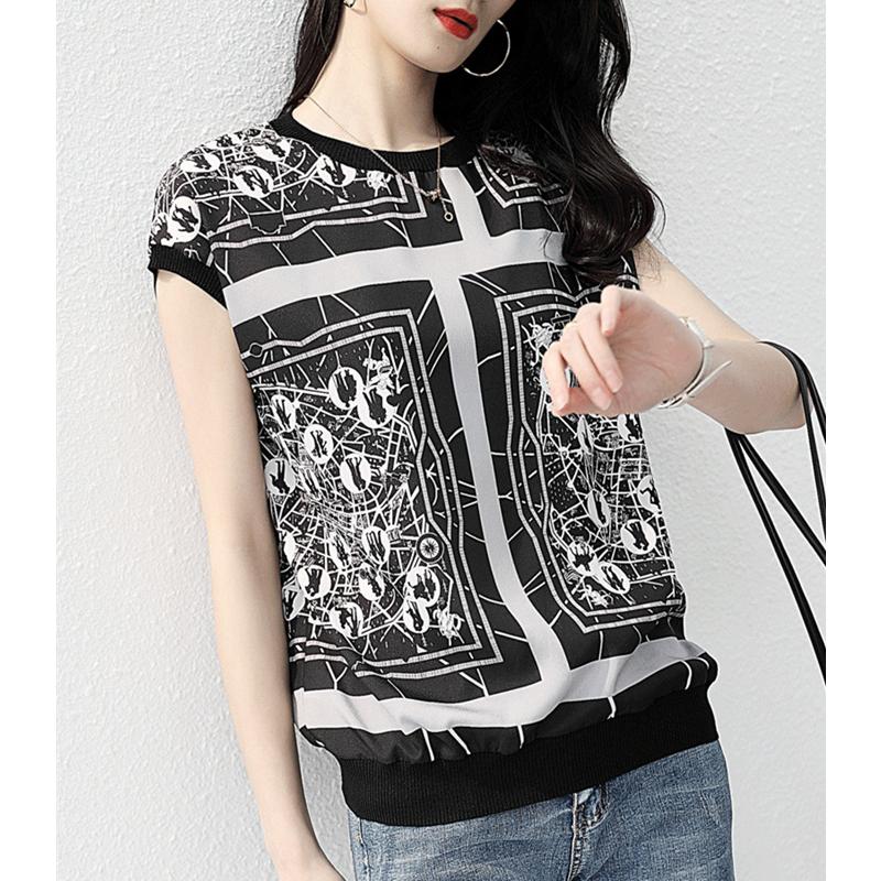 ブラウス レディース 40代 春夏 オシャレブラウス シフォンブラウス プリント 新作 トレンド 上品 Tシャツ 半袖トップス おしゃれ カジュアル 通勤 ゆったりtシャツ 30代 50代