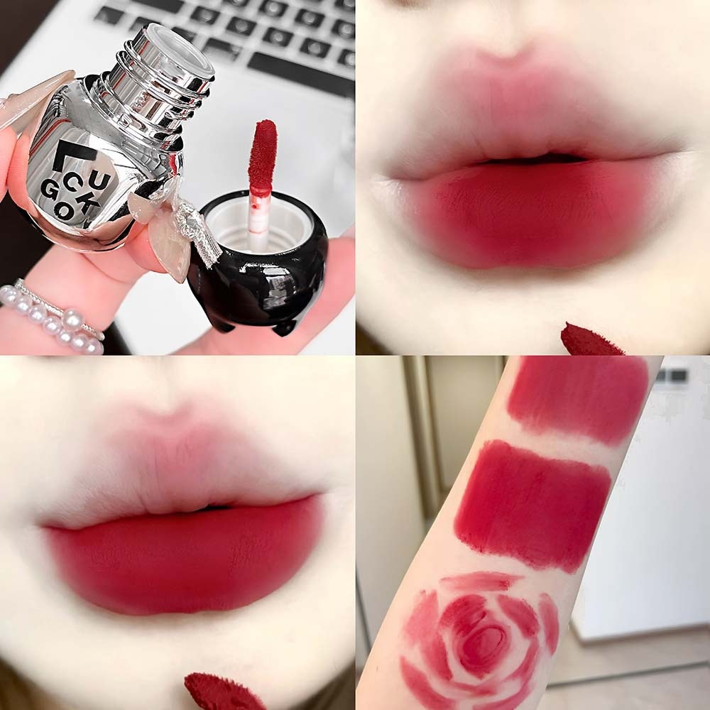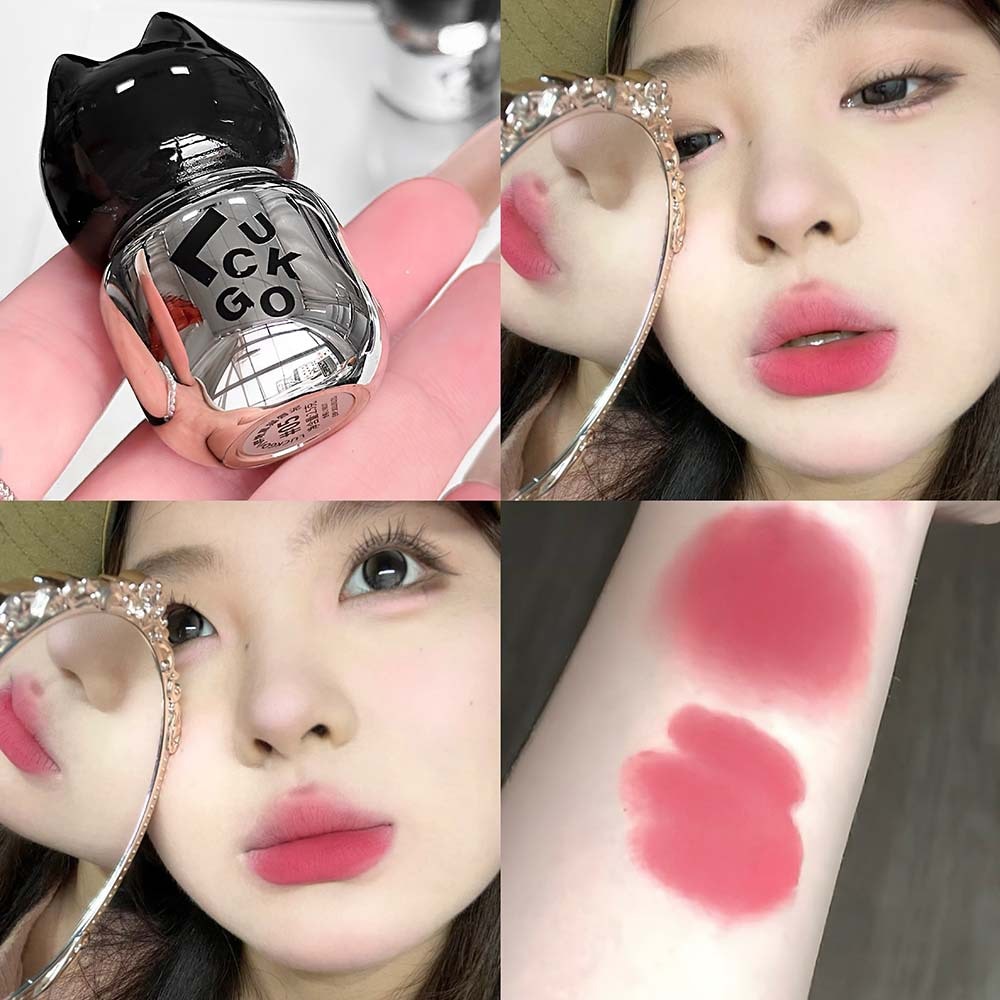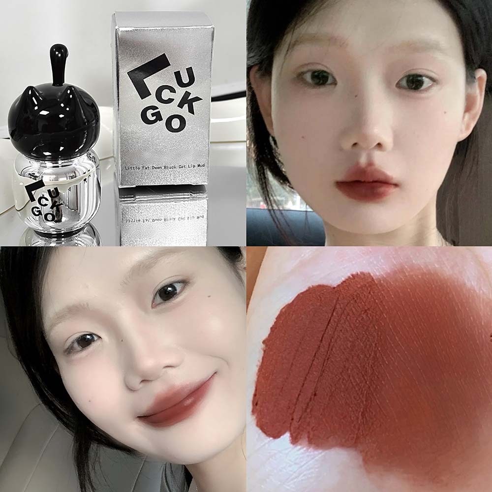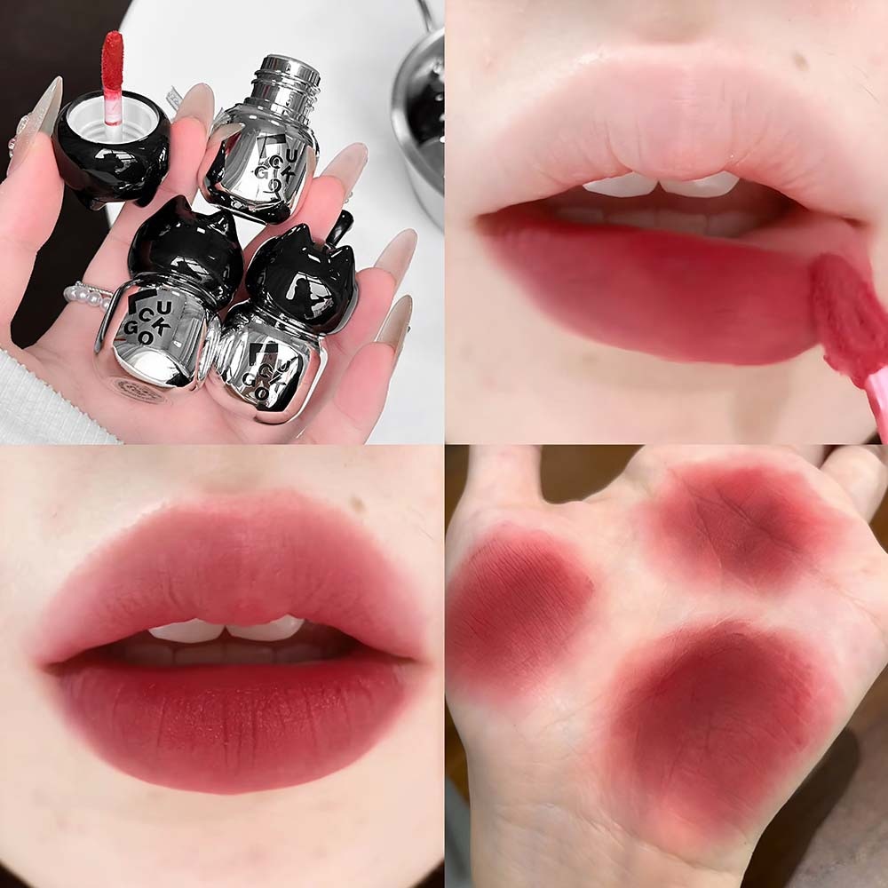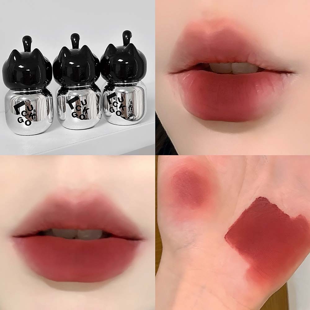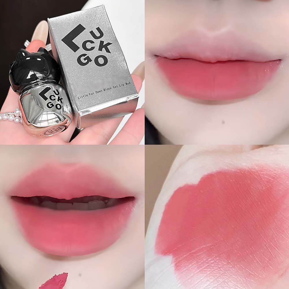 泥リップ ぷっくり ブラック キャット マットリップ 滑らか ミルククリーム 質感 低彩度 高発色 ナチュラル メイク 軽い 長持ち 密着 可愛い デザイン コンパクト コスメ 血色感 アップ