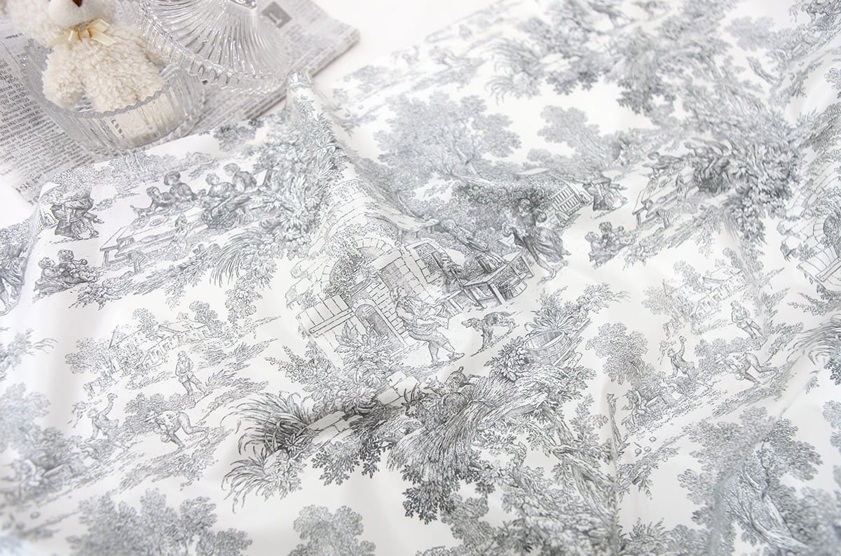 韓国生地 大幅 防水生地 トワルドジュイ マイクロファイバー TPUコーティング Toile de Jouy Water Proof 90cm x 145cm