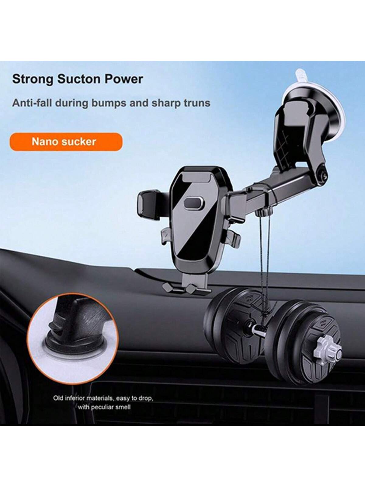 1個 吸盤式車載スマホホルダー吸盤式車載スマホマウントモバイルスマートフォンホルダーダッシュボード&ウィンドシールド用タブレットホルダー調整可能なアーム簡単取り付け