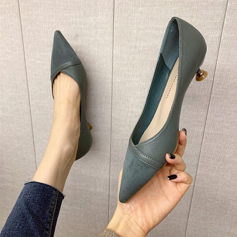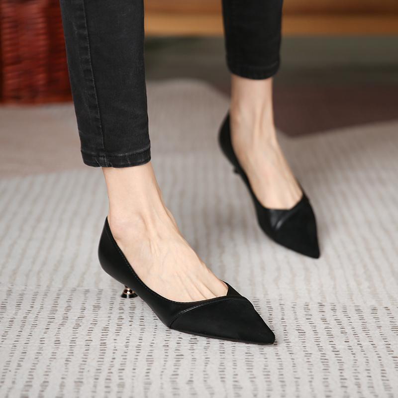 ワークシューズ ローヒール ファイン 3cm ポインテッドシャローマウス シングルシューズ