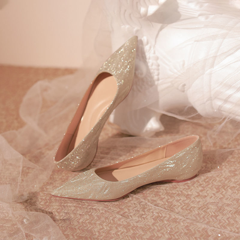 ポインテッドトゥ フラットボトム シングルシューズ ウェディングシューズ