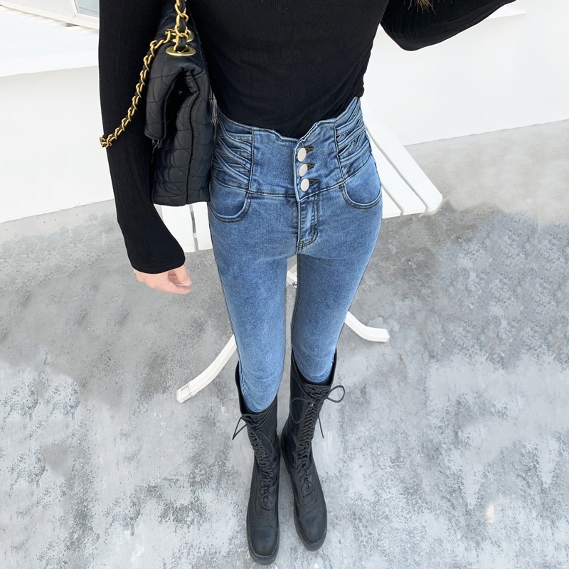 大人気本日 新 レディース ハイウエスト ジーンズ ブルー ブラック 体型カバー 着痩せ 大人気 韓国ファッション 美脚