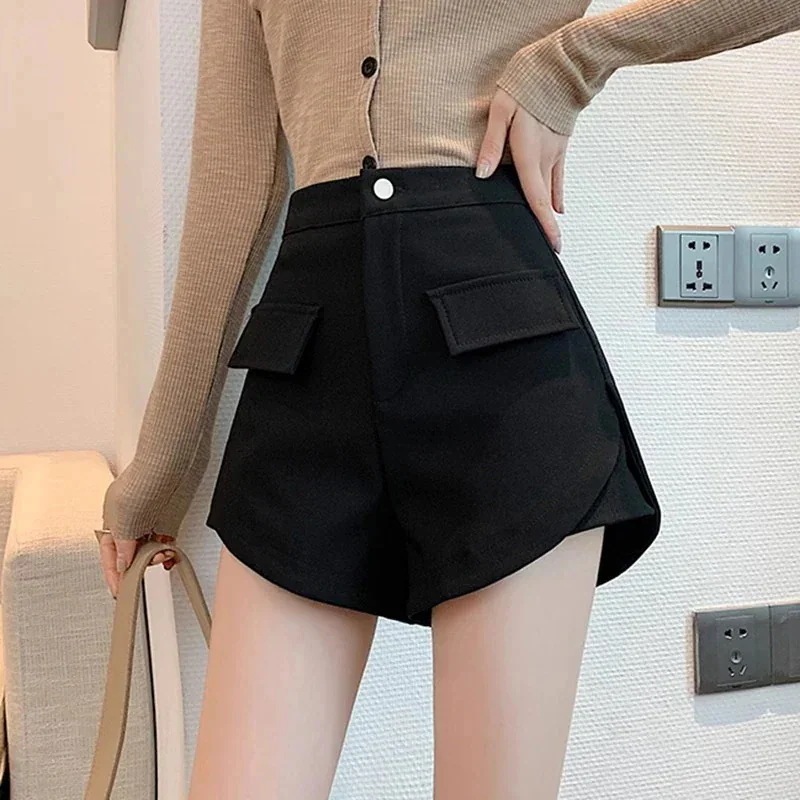 レディース ショートパンツ ハイウエスト ワイドシルエット 脚長効果 薄手 夏用 カジュアル ブラック スラックス風 2026新作 韓国風 おしゃれ レディースボトムス