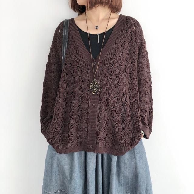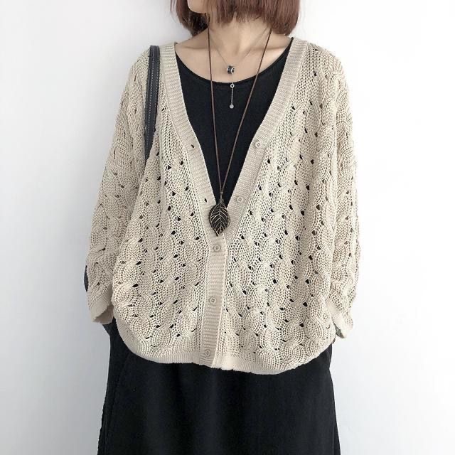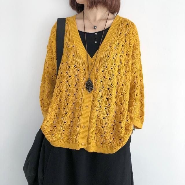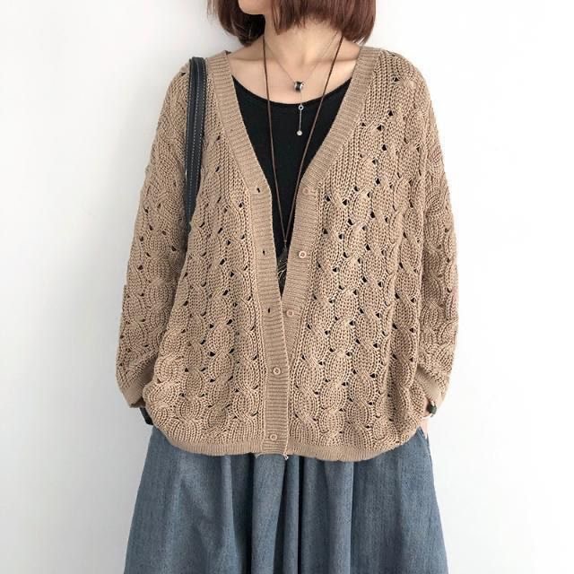 【2026春の新作!】透かし編み ニットカーディガン レディース Vネック長袖 カーディガン薄手 ゆったり 大きいサイズ 体型カバー 春 アウター ニットトップス
