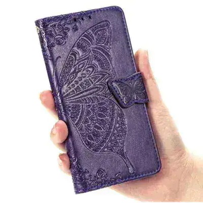 ストラップ付き 花型 蝶々 型押し