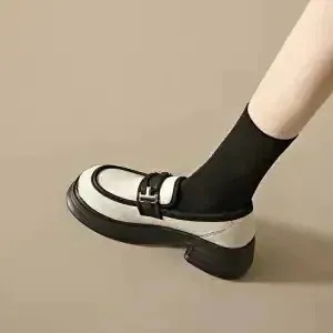 靴 レディース レトロ ローファー 英伦風 厚底 パッチワーク 革靴