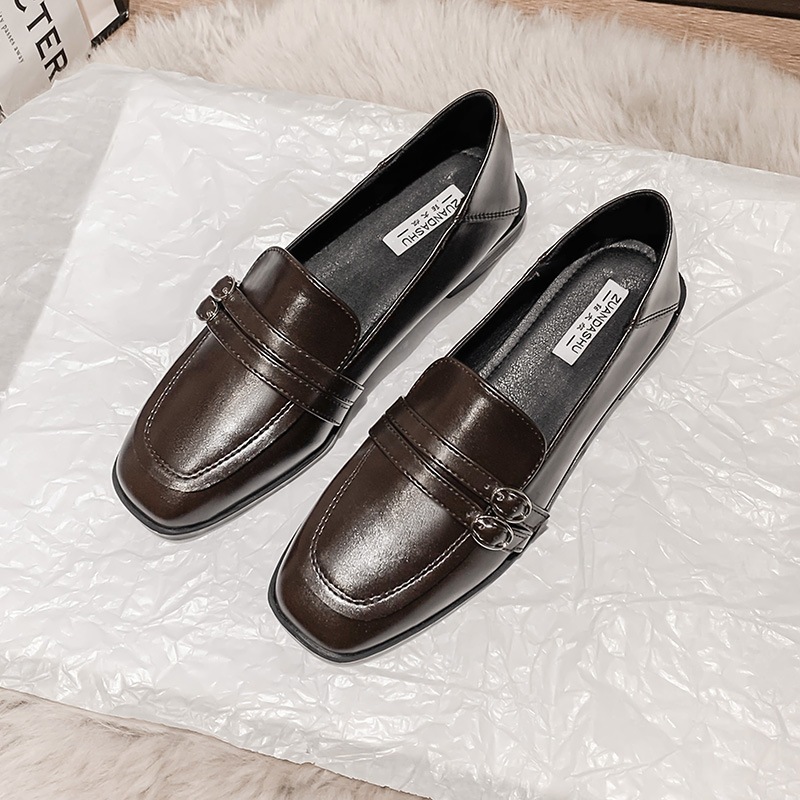 韓国レディースフラットシューズ復古太いパンプスローファー新英倫風大きいサイズ 41一43ワンペダルシューズ