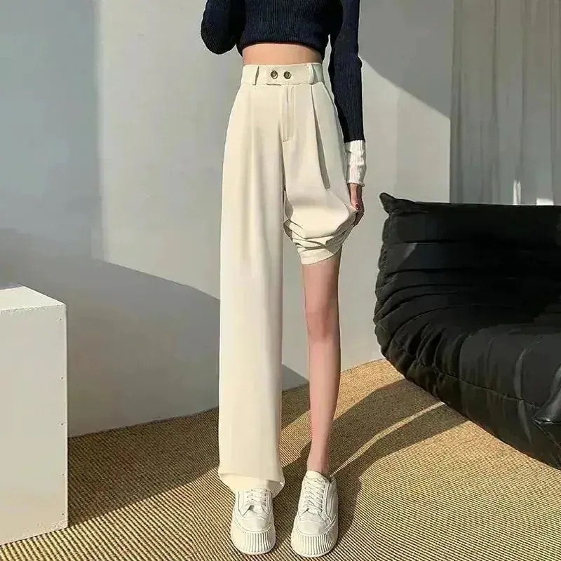 新作白パンツ新作ゆったり痩せ見えハイウエスト遮肉ワイドモップパンツ涼しく楽ちんセットアップ スラックスパンツ ひんやりボトムス ワイドパンツ テーパードパンツ 脚長効果スキニーパンツハーフパンツ
