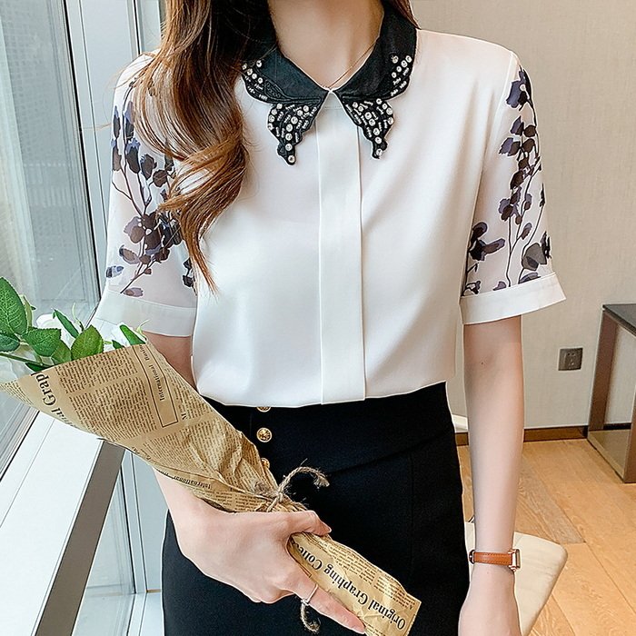 レディースブラウス203040夏作オシャレブラウスシャツ白シフォンブラウス刺繍ネック半袖トップスおしゃれ韓国風大人通勤ゆったりシャツ3050人気作エレガントキレイめ韓国風お洒落ブラウス夏作トップス