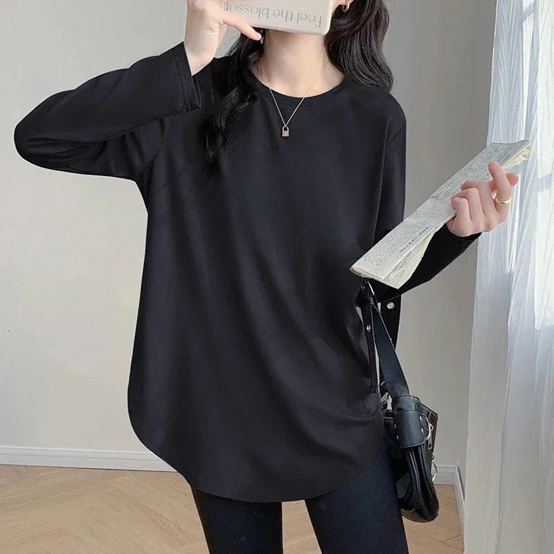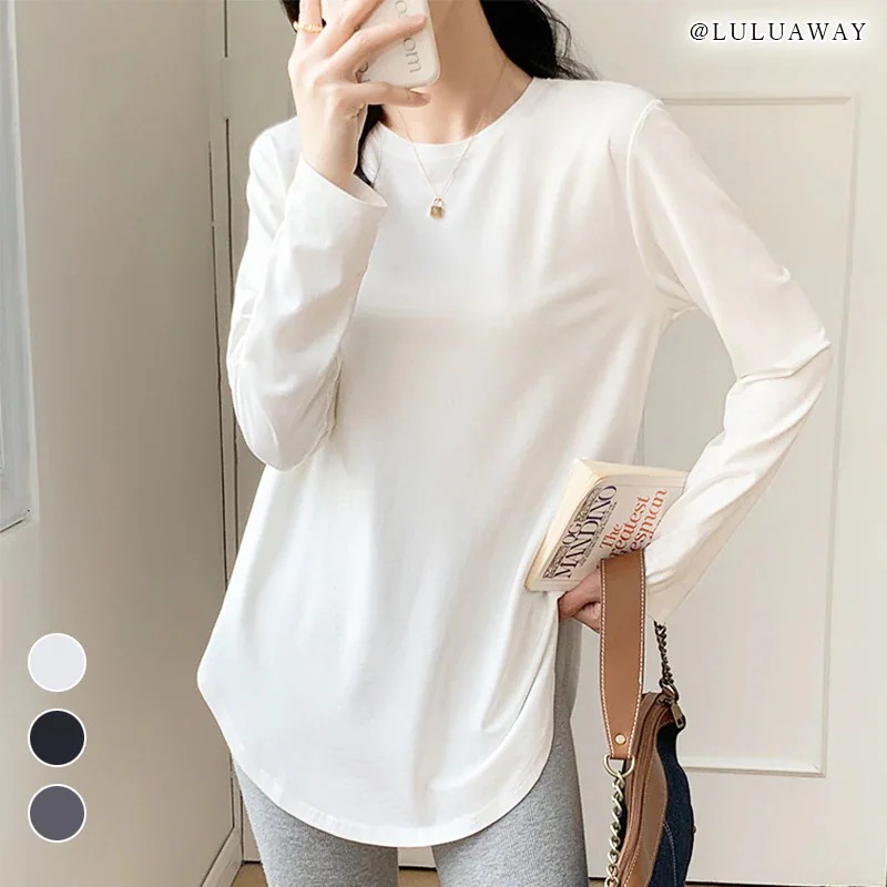 tシャツ レディース 長袖 カットソー きれいめ コットン ロンT 白 黒 大きいサイズ 春 秋 冬 レイヤード 重ね着 インナー