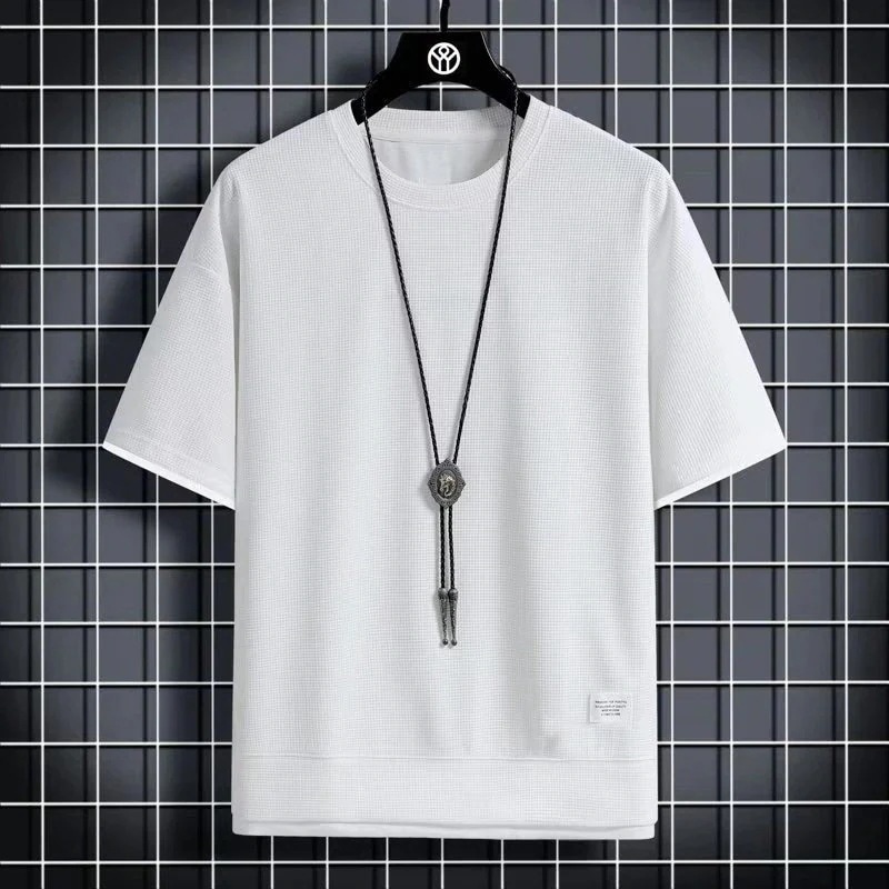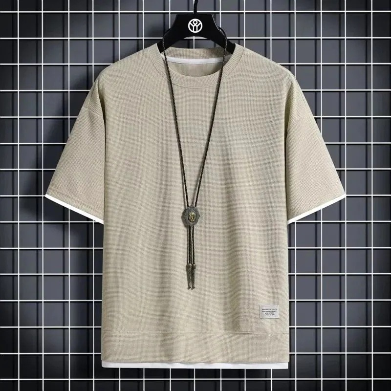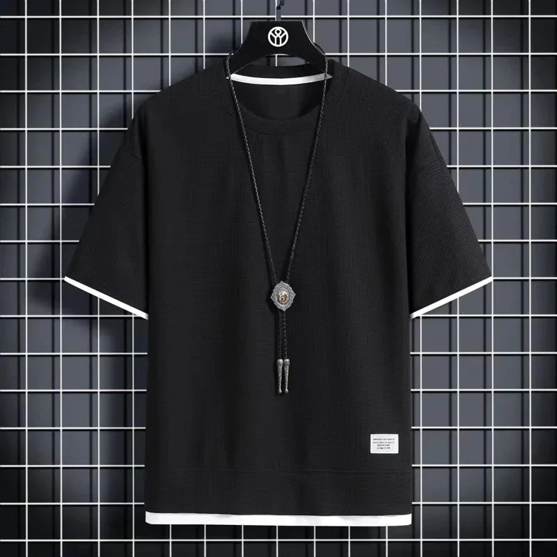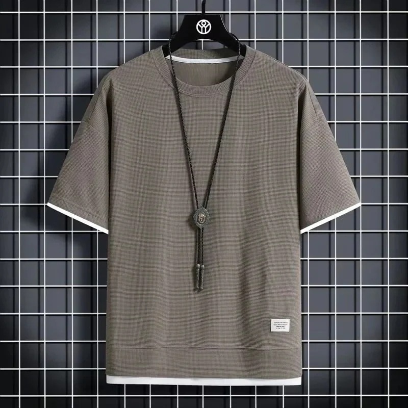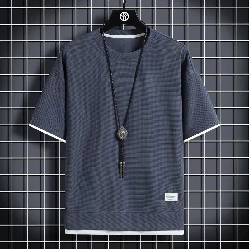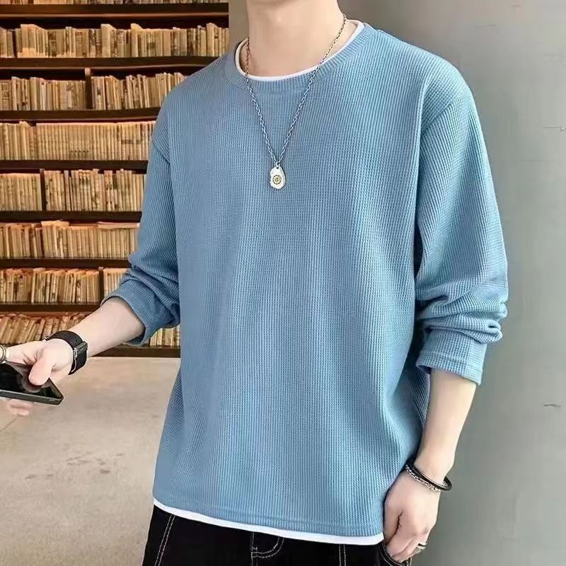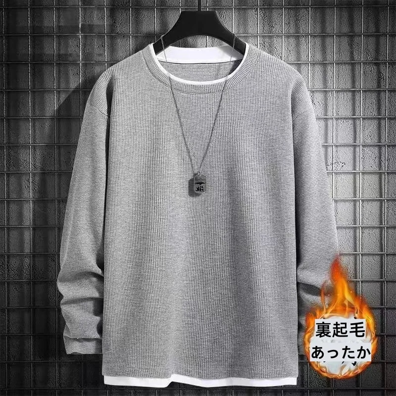 長袖tシャツ メンズファッション配色Tシャツ トレーナー スウェット ワッフル長袖 半袖Tシャツ男性ゆったり長袖 半袖Tシャツクルーネックトップス