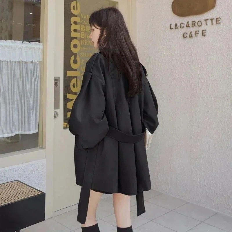 ジャケット アウター 女性用コーヒーショートウインドブレーカージャケット緩い25との韓国スタイルインス小さなランタンスリーブコート 韓国ファッション