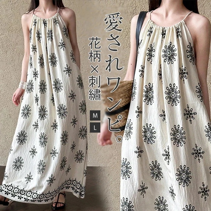 ワンピース キャミワンピース 刺繡 花柄 ワンピース さらりと心地よい 涼やか 夏 ワンピース 無袖 レディース 可愛い きれいめ ゆったり レイヤード風 体型カバー 着痩せ シンプル 薄手 旅行