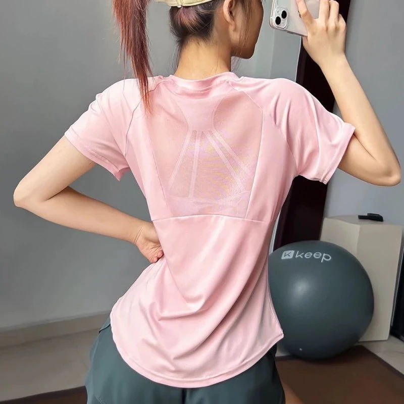 2026年 新商品 爆発的人気商品 おしゃれヨガウェアスポーツ半袖女性速乾服夏ランニングフィットネスウェアヨガウェア美しい背中メッシュストレッチスリムトレーニングTシャツ 速乾 服