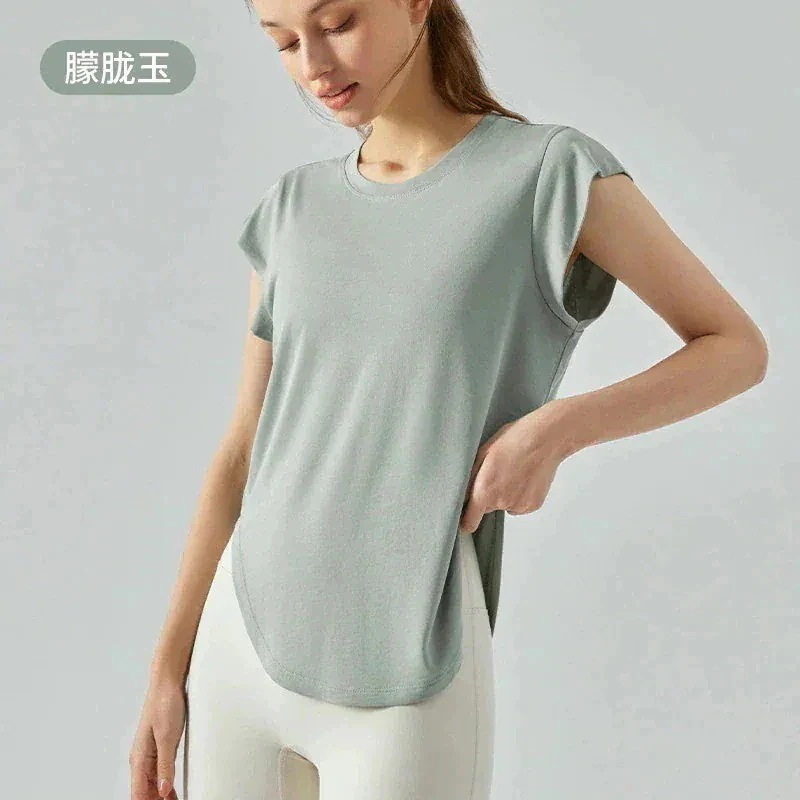 2026年 新商品 爆発的人気商品 春のカバーショルダーヨガ半袖 ルーズカジュアルトップス アウトドアスポーツベストヨガウェアTシャツ 速乾 服