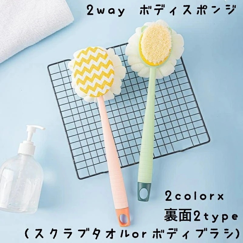赤字販売 ボディスポンジ 両面 2way 持ち手つき シャワーブラシ ボディブラシ スクラブタオル 壁掛け 吊るせる お風呂グッズ かわいい