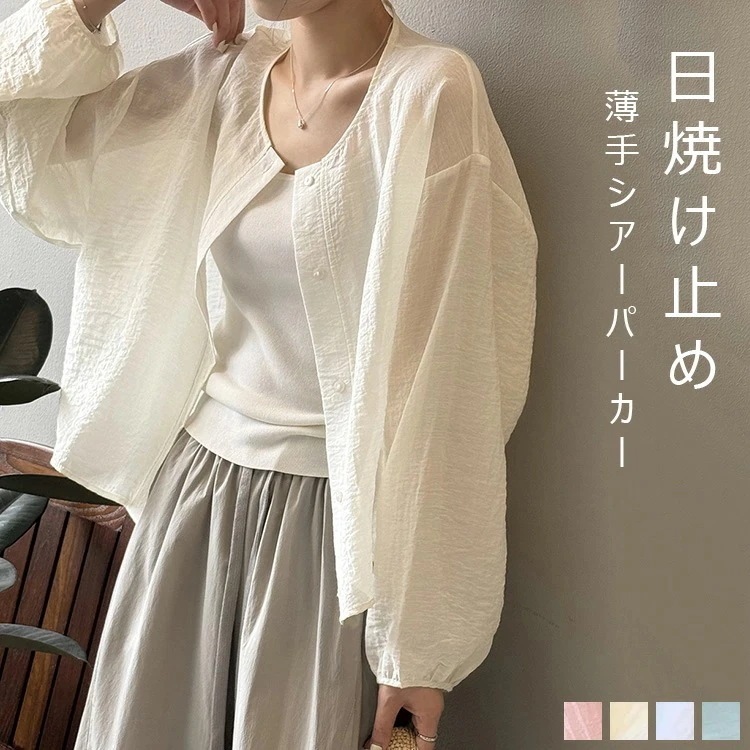 uvカット ジャケット レディース ノーカラージャケット 紫外線対策 春 夏 シアー ブルゾン アウター カーディガン 薄手 春夏 透け感 大きいサイズ パーカー 軽