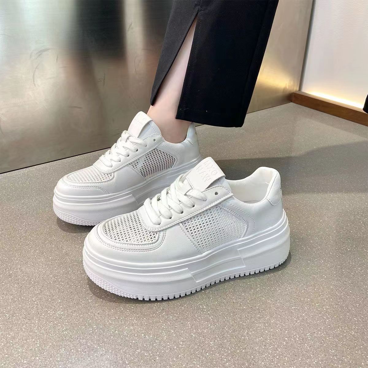サンダル レディース 韓国ファッション 身長アップ3cm カジュアルネット上の白い靴女性通気ネット靴 厚底サンダル