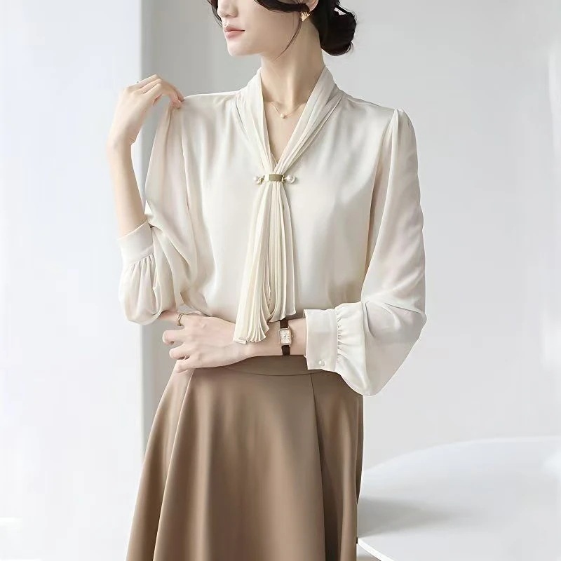 ブラウス レディース 春新作 バルーンスリーブシャツ 高級感 シフォン 長袖 シャツ おしゃれ トップス シンプル オフィス OL ビジネス フォーマル カジュアル 無地 通勤 ブラウ