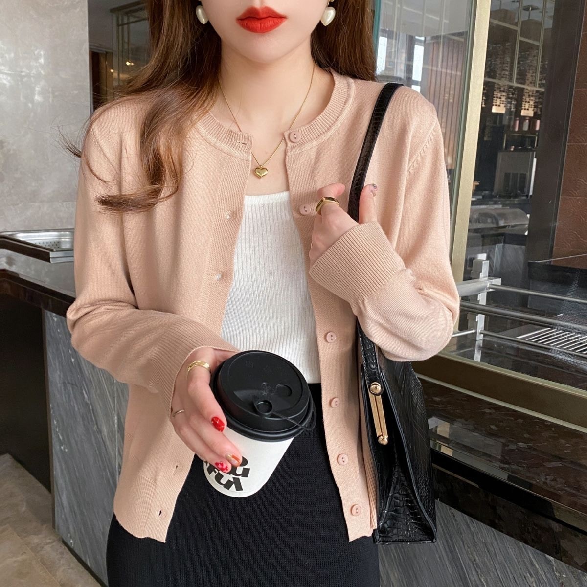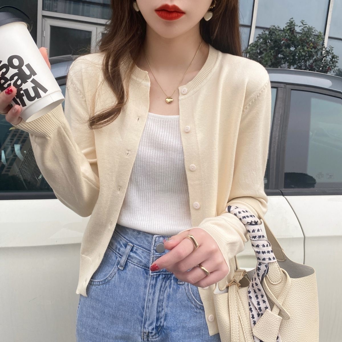 【時間限定2枚で2oo円OFF】ニットカーディガン レディース 春服 丸首 長袖 カーディガン 薄手 無地ニット日よけカットソーストール 春 アウター トップス