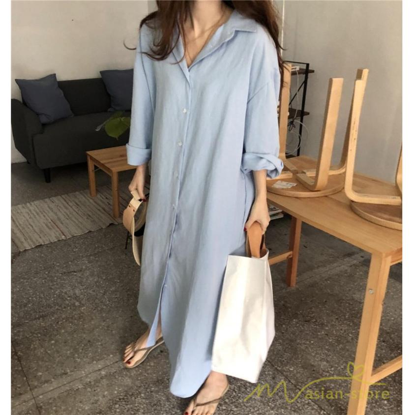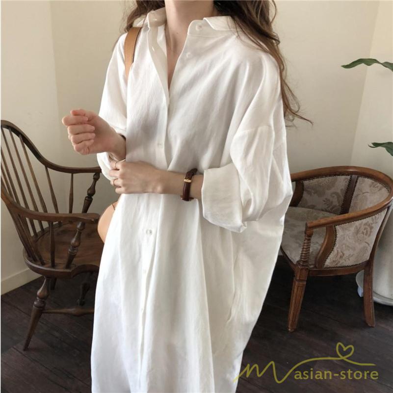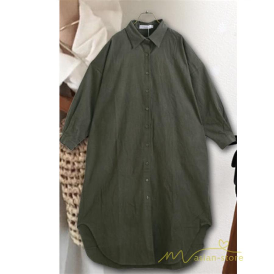 シャツワンピース 綿シャツ 長袖 ワンピース レディース 春コーデ 羽織り 楽チン ロングワンピース ミモレ丈 大人 40代50代 無地 大人 カジュアル 通学通勤