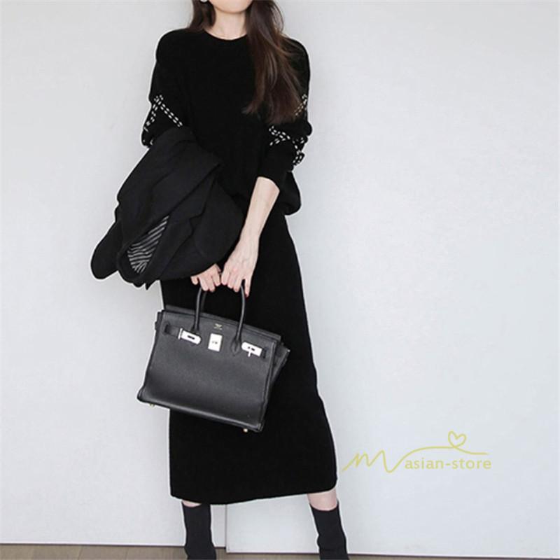 ニットセットアップ レディース 40代 春秋 長袖 ニット セーター スカートセットアップ 無地 ロング丈 オシャレ韓国風 カジュアル 2点セット オフィス オシャレ