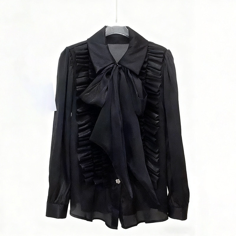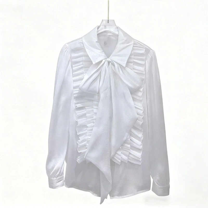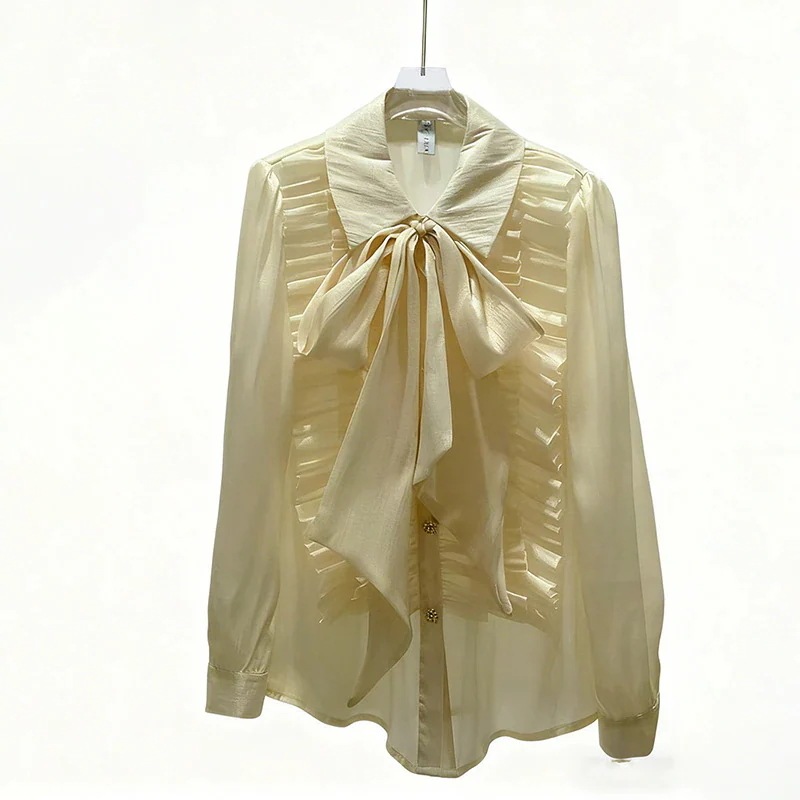 【シャツ】2026新作 上品 エレガント レトロ デザイン性 リボン 紐付き スリムフィット スリム効果 レディース シャツ
