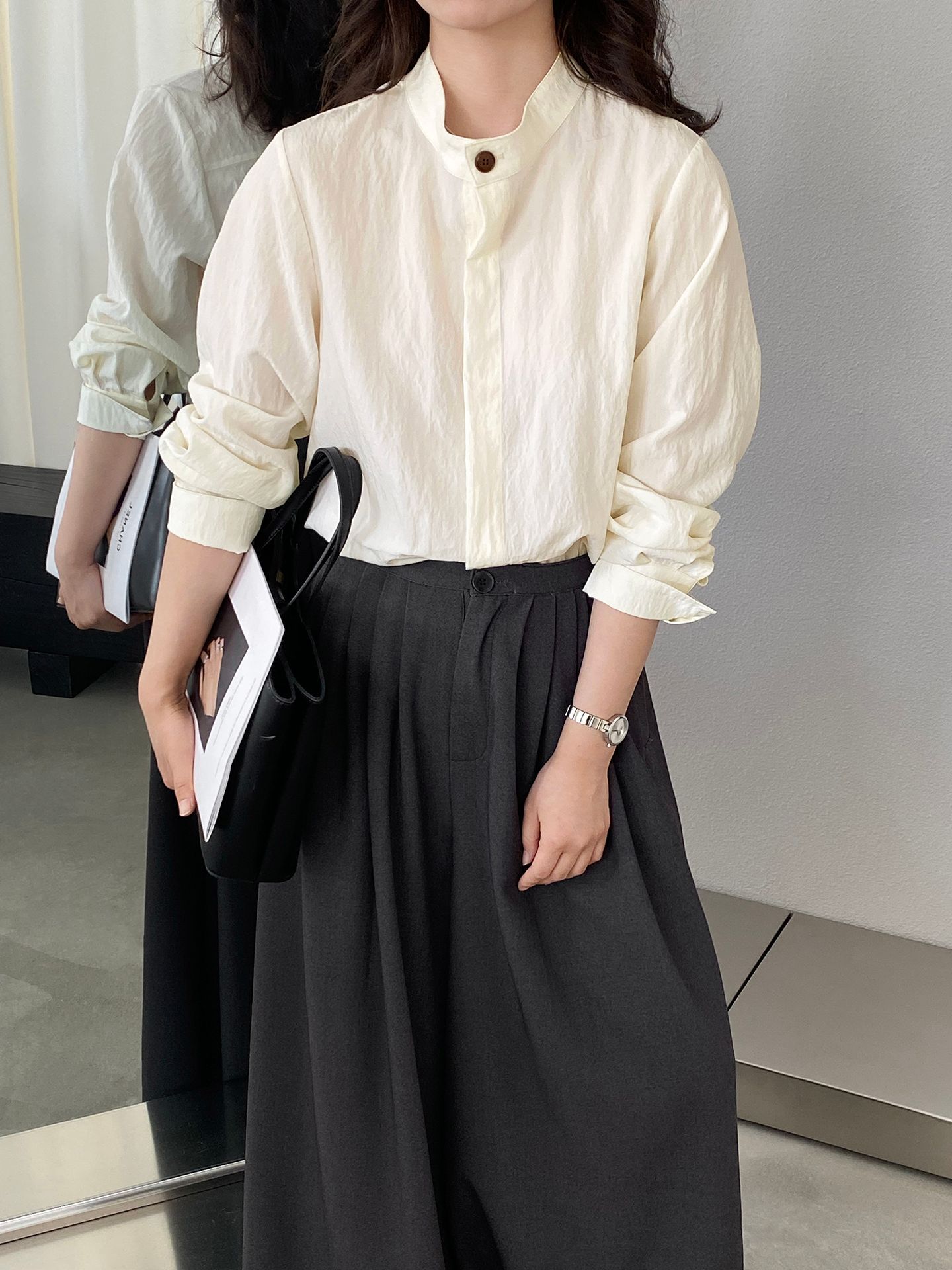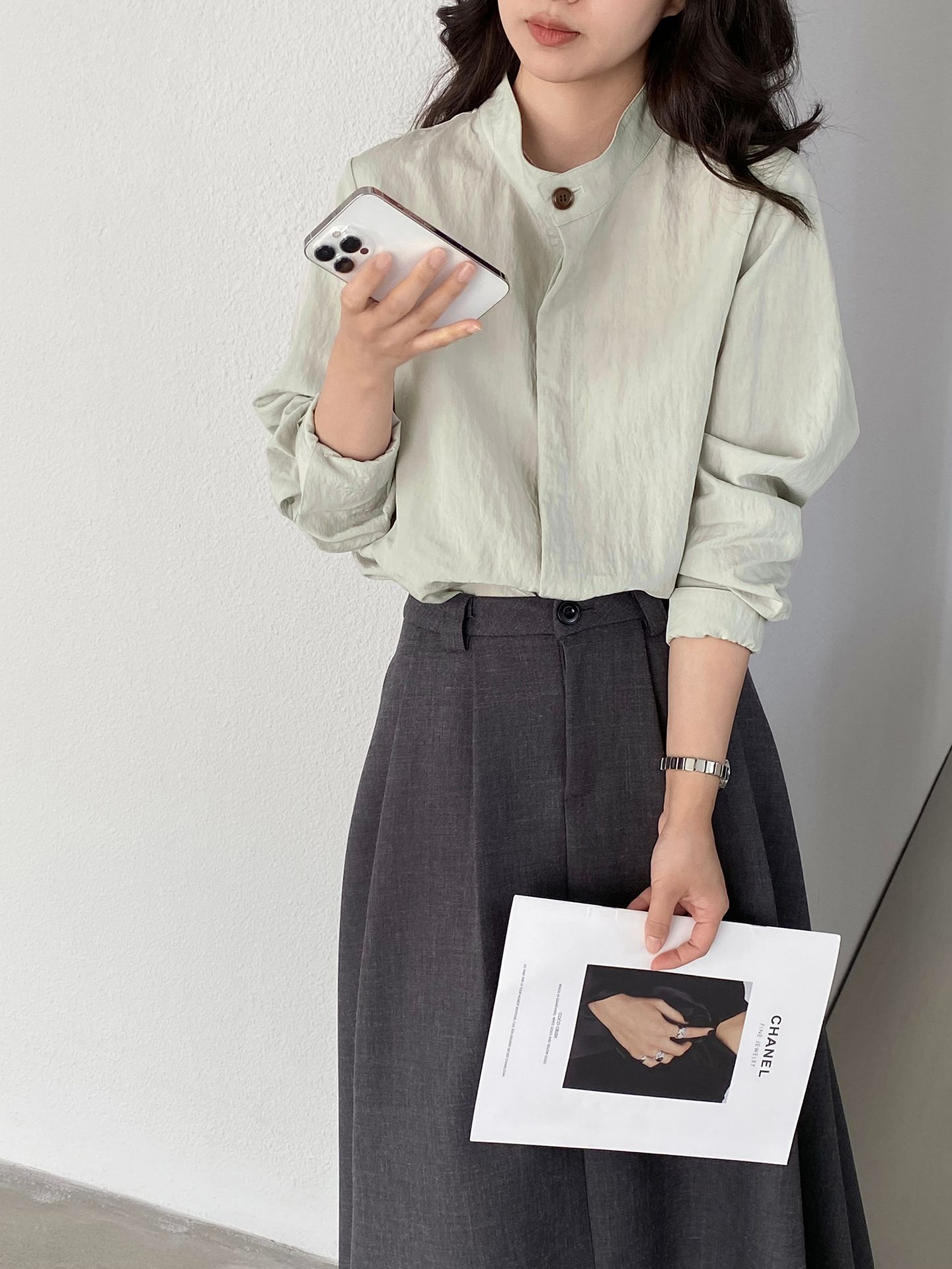 【シャツ】ニッチなデザイン レトロ 質感 グレーグリーン テンセル シャツ 2026新作 トップス