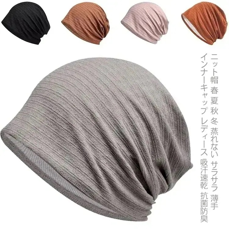 ニット帽 蒸れない サラサラ 薄手 インナーキャップ レディース 吸汗速乾 抗菌防臭 コットン帽 抗がん剤 医療用帽子 2層構造 女性 ケア帽 ストレッチ 通気性 柔らかい おしゃれ74