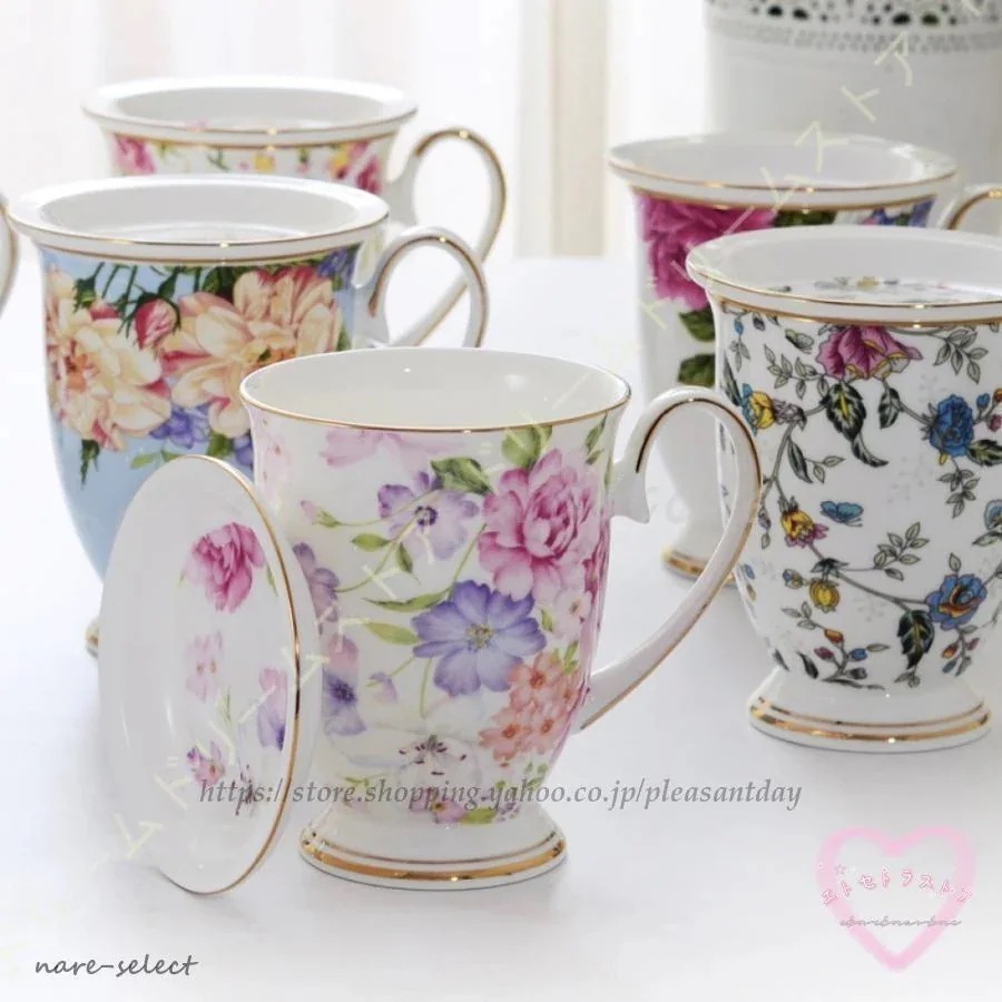 wusu0bici迅速な出荷マグカップ 蓋付き ギフト 結婚 おしゃれ コーヒーマグ コップ マグ 実用的 陶芸 花柄 大容量 陶器 新生活 誕生日 300ml 母の日 コーヒー ギフト 雑貨