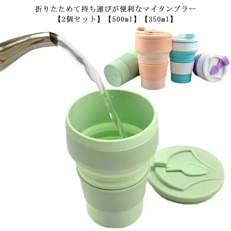 タンブラー 持ち運び 折りたたみカップ フタ付き カップ 折りたたみ シリコン コップ 2個セット マイカップ ポータブル 水筒 500ml オフィス こぼれない 軽量 コンパクト 旅行 水分補給 学