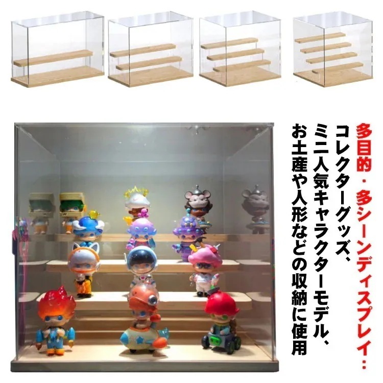 フィギュアケース コレクションケース ディスプレイケース アクリル製 4段ステージ 木目調 棚 卓上 コレクション ケース 棚 アクリル ディスプレイケース