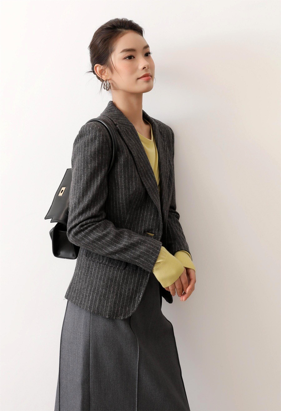 モダン配色ストライプ ウールテーラードジャケット0327