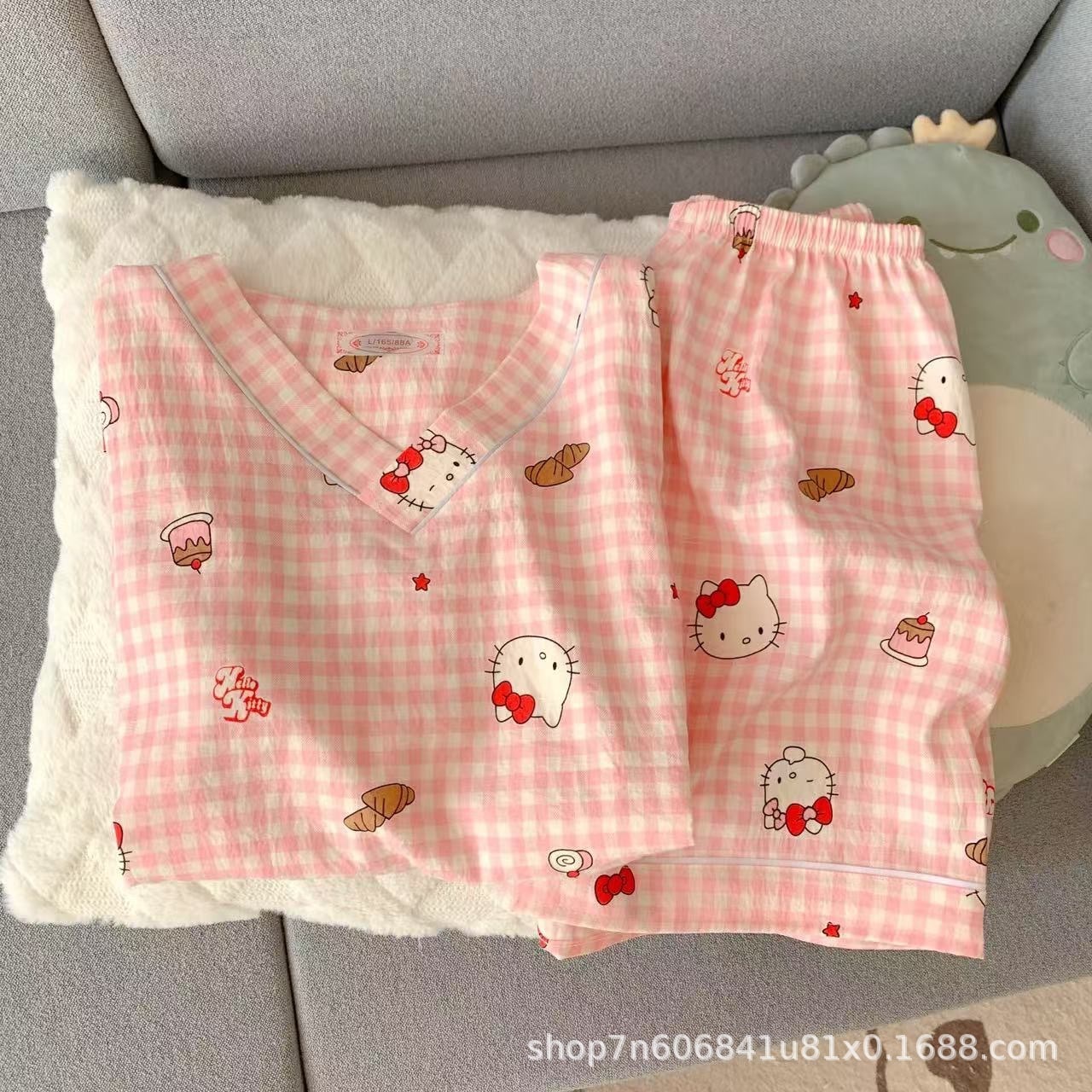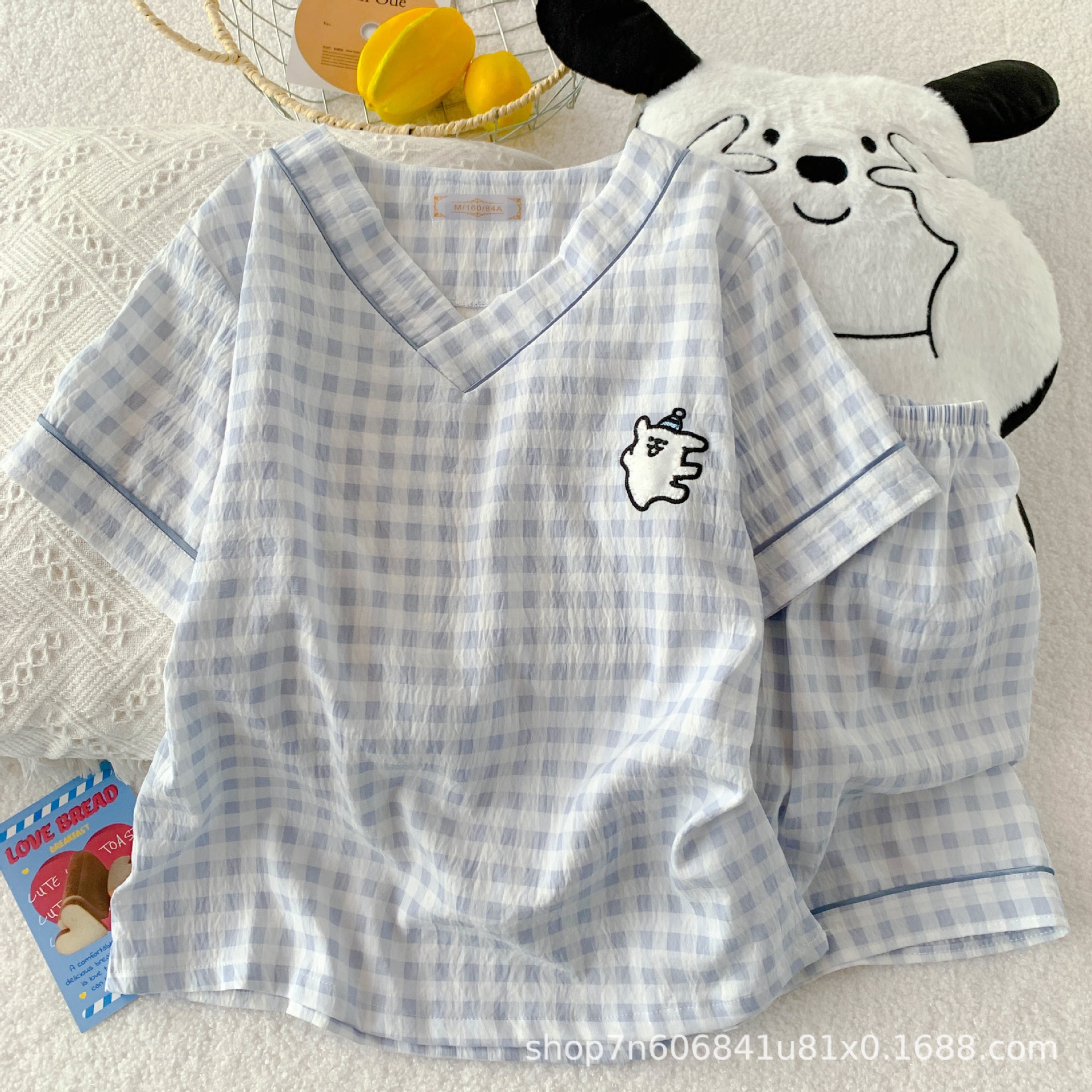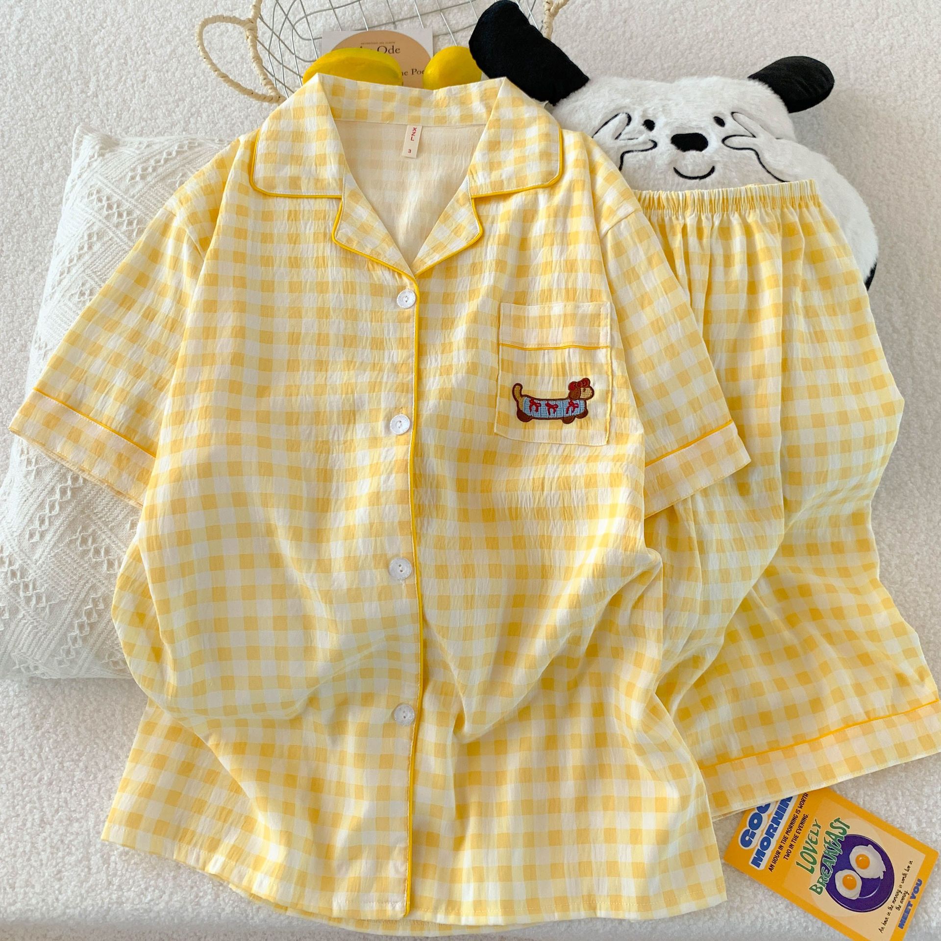 【即納 激安販売】春夏 レディース パジャマ 綿 100% 半袖 ツーピースショートパンツ ツーピース 可愛い チェック柄 カジュアル ルームウェア 薄手 吸汗 部屋着 セットアップ 外出着可
