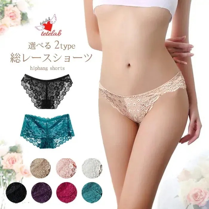 選べる2タイプ 総レース ショーツ 響かない ひびかない レース ヒップハングショーツ ボックスショーツ ローライズ レースパンツ ヒップハンガー パンツ レースパンツ インナー レディー1