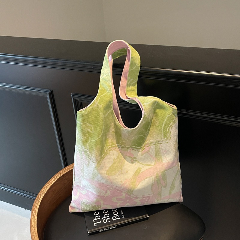 小清新 アンダーアームバッグ レディース 25 ピンクグリーン 配色 おしゃれ 帆布バッグ 大容量 ショルダーバッグ