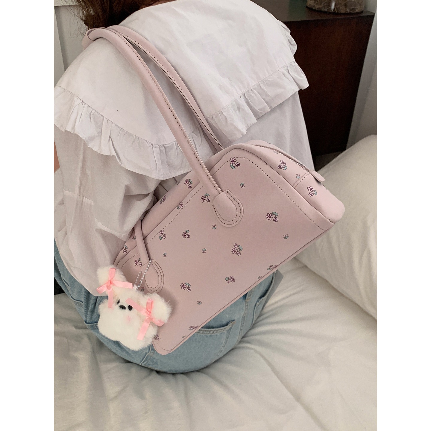 おしゃれ レディース ハンドバッグ 26 花柄 プリント ボウリングバッグ おしゃれ ショルダー 通勤